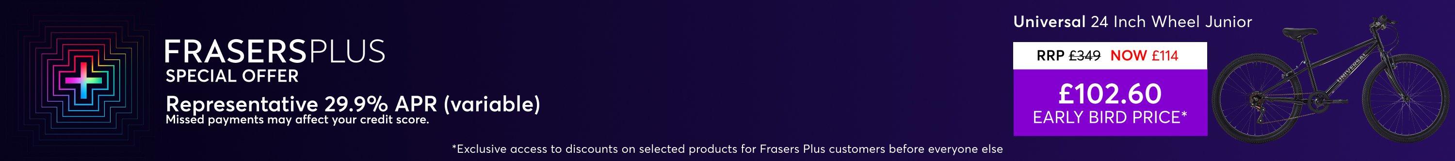 10% off included in Frasers Plus Prices. No code required. Representative 29.9% APR variable. See full T&Cs.