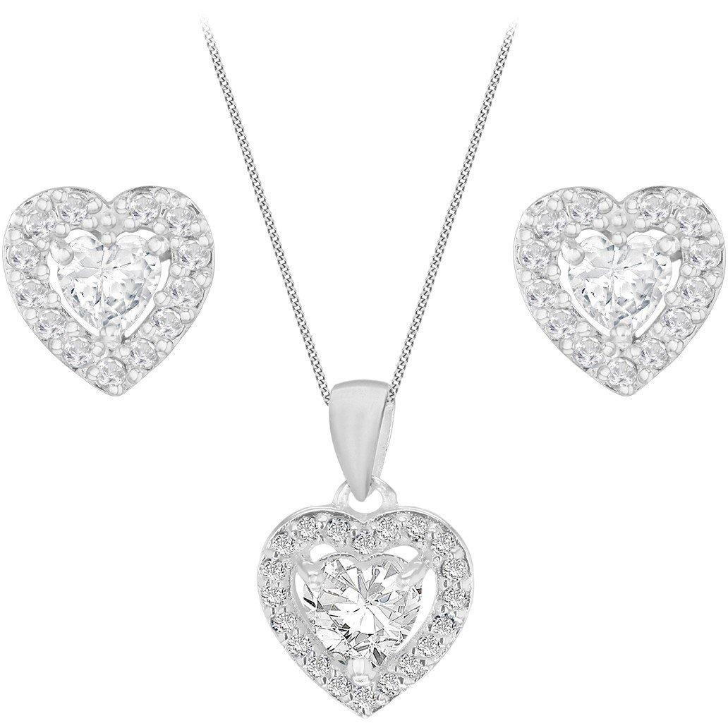 Silver CZ Heart Earrings & Necklace Set
