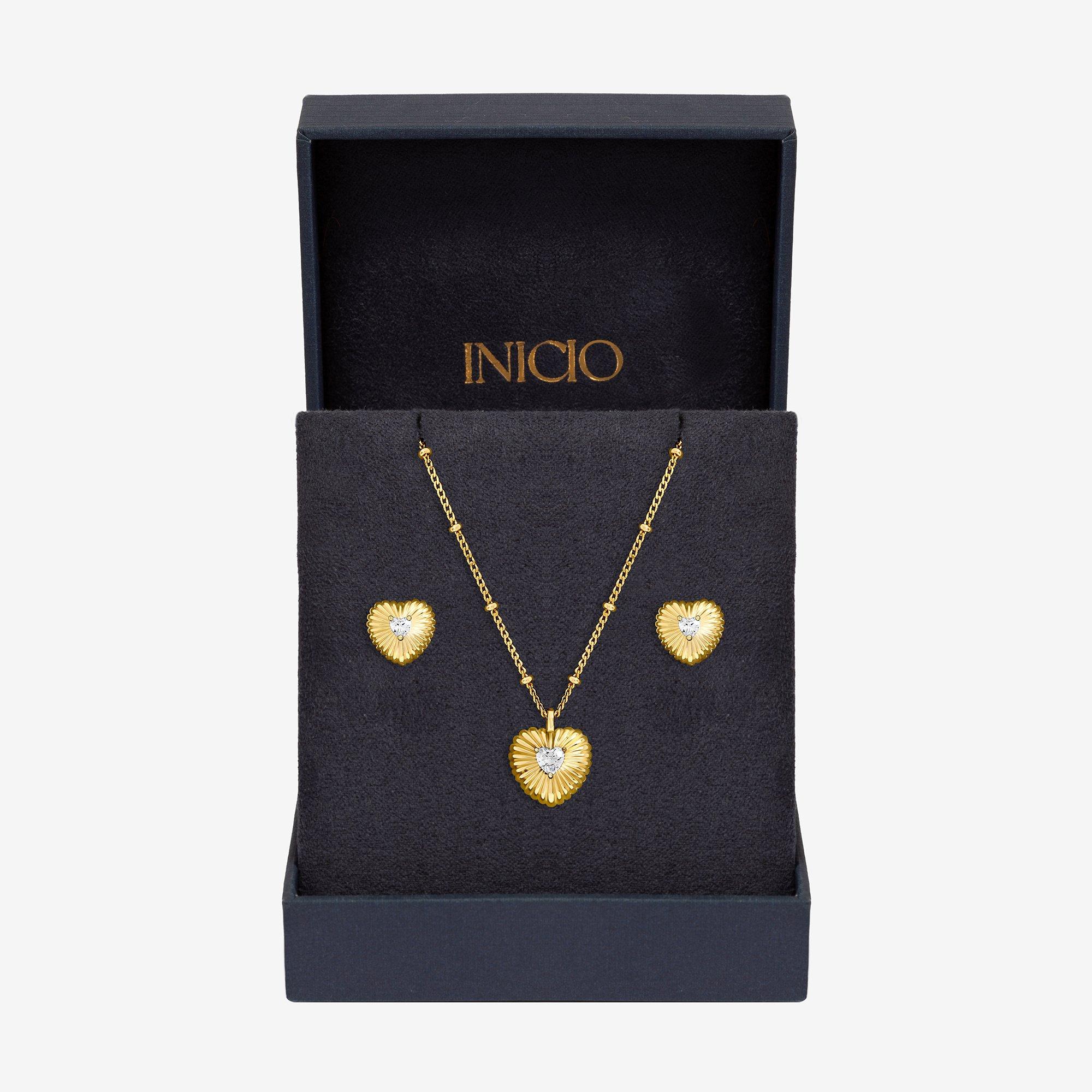 Gold Plated and CZ Ridged Heart Set - Gift Box