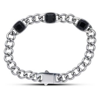 Mens Stainless Steel Black Agate Dogtag Pendant