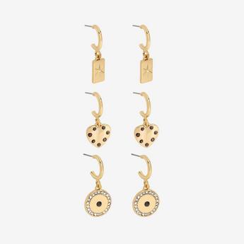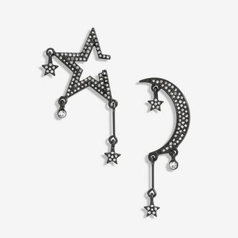 Gold Crystal Star And Moon Missmatch Drop Earrings