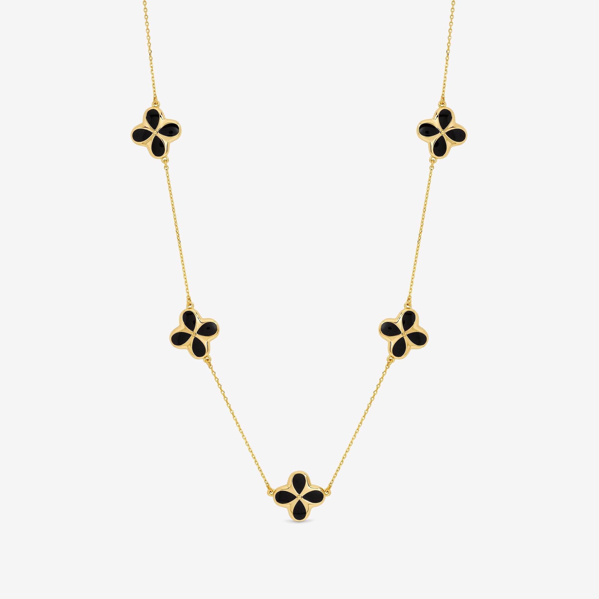14K Gold Plated Jet Clover Necklace - Gift Pouch