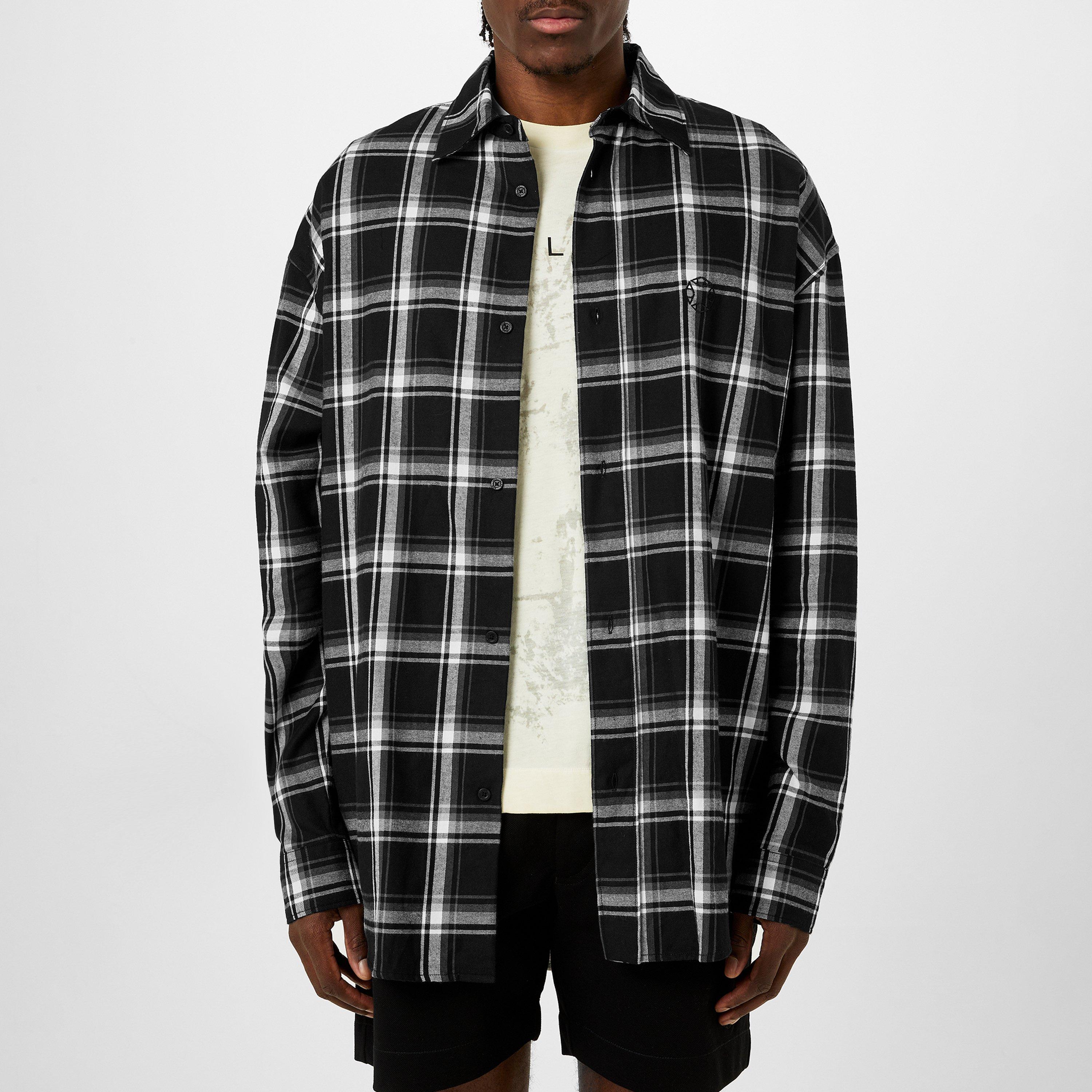 The Checked Long-Sleeve Patterned Shirt from 1017 ALYX 9SM features a grid design with precision-cut collar and cuffs. The structured shape offers a contemporary take on a menswear essential.