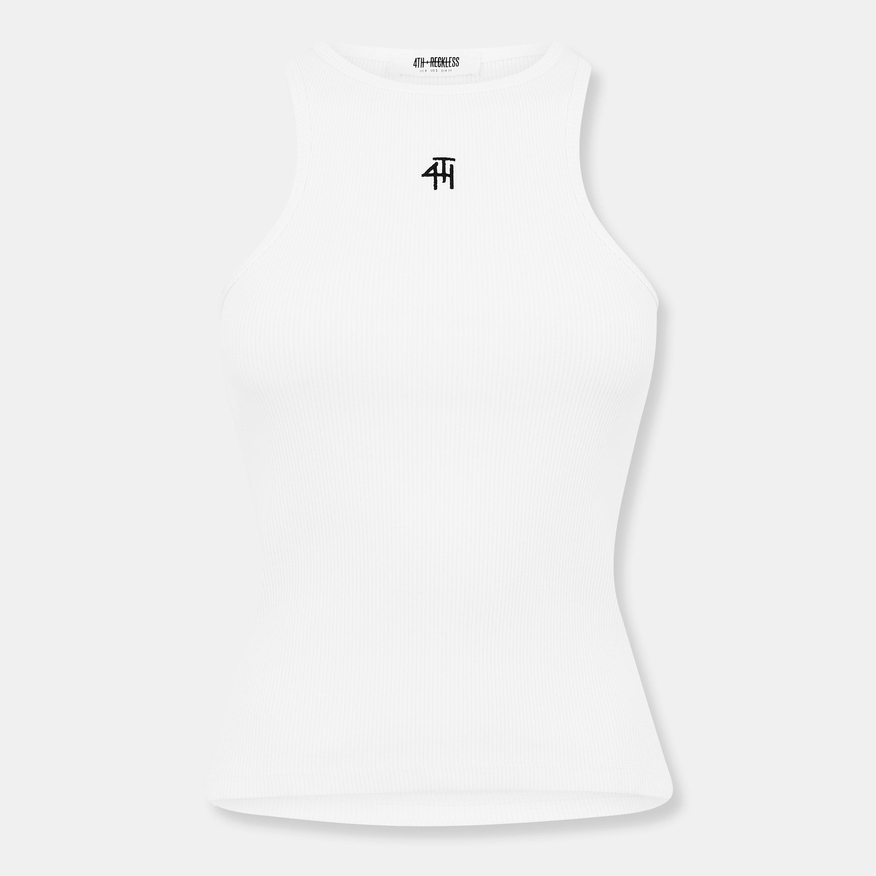 The 4th and Reckless Sleeveless Tank Vest features a streamlined profile. The minimal design works as a base piece or standalone top.