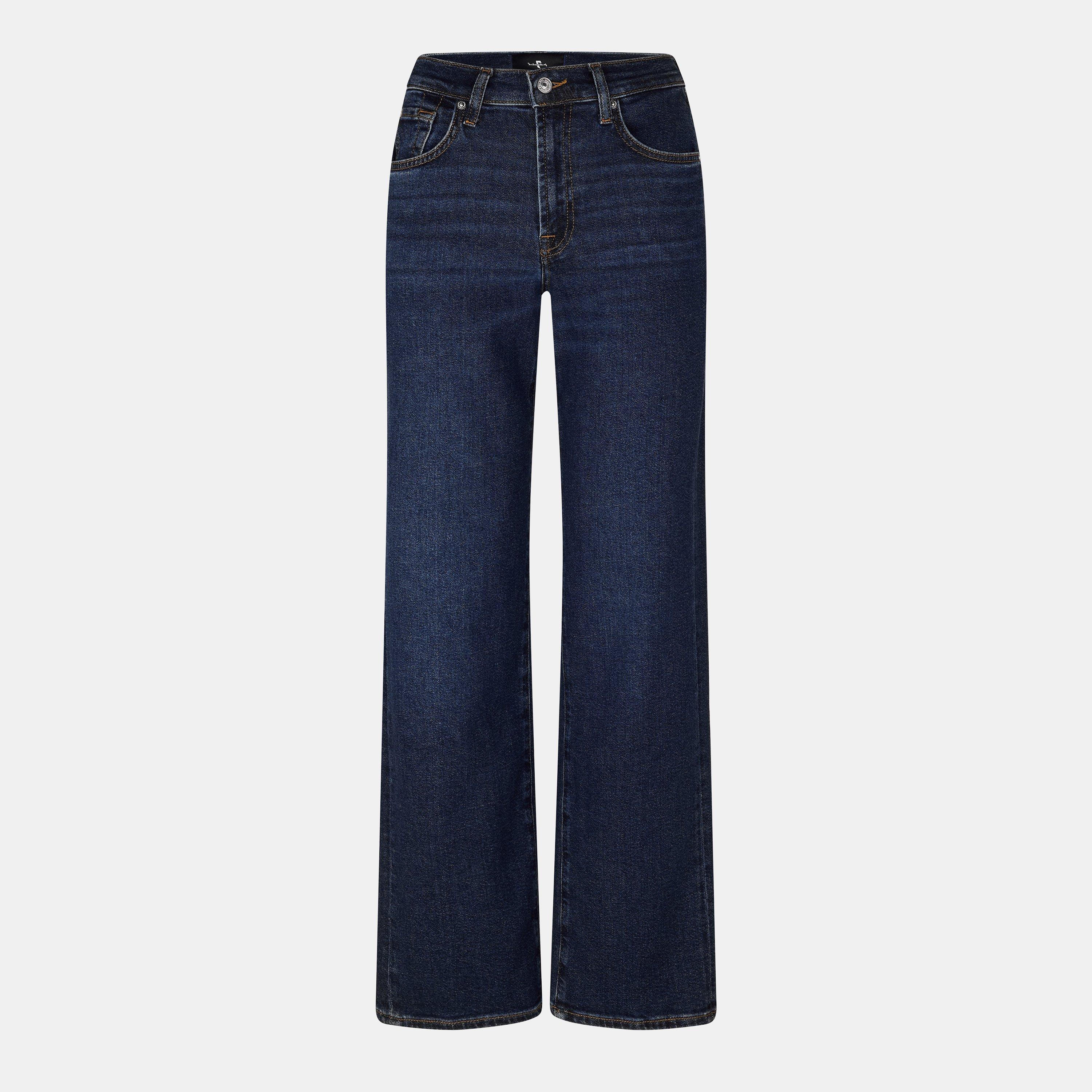 The 7 For All Mankind Stovepipe Straight Leg Jeans feature a consistent width from hip to ankle. The cut sits close without restriction.