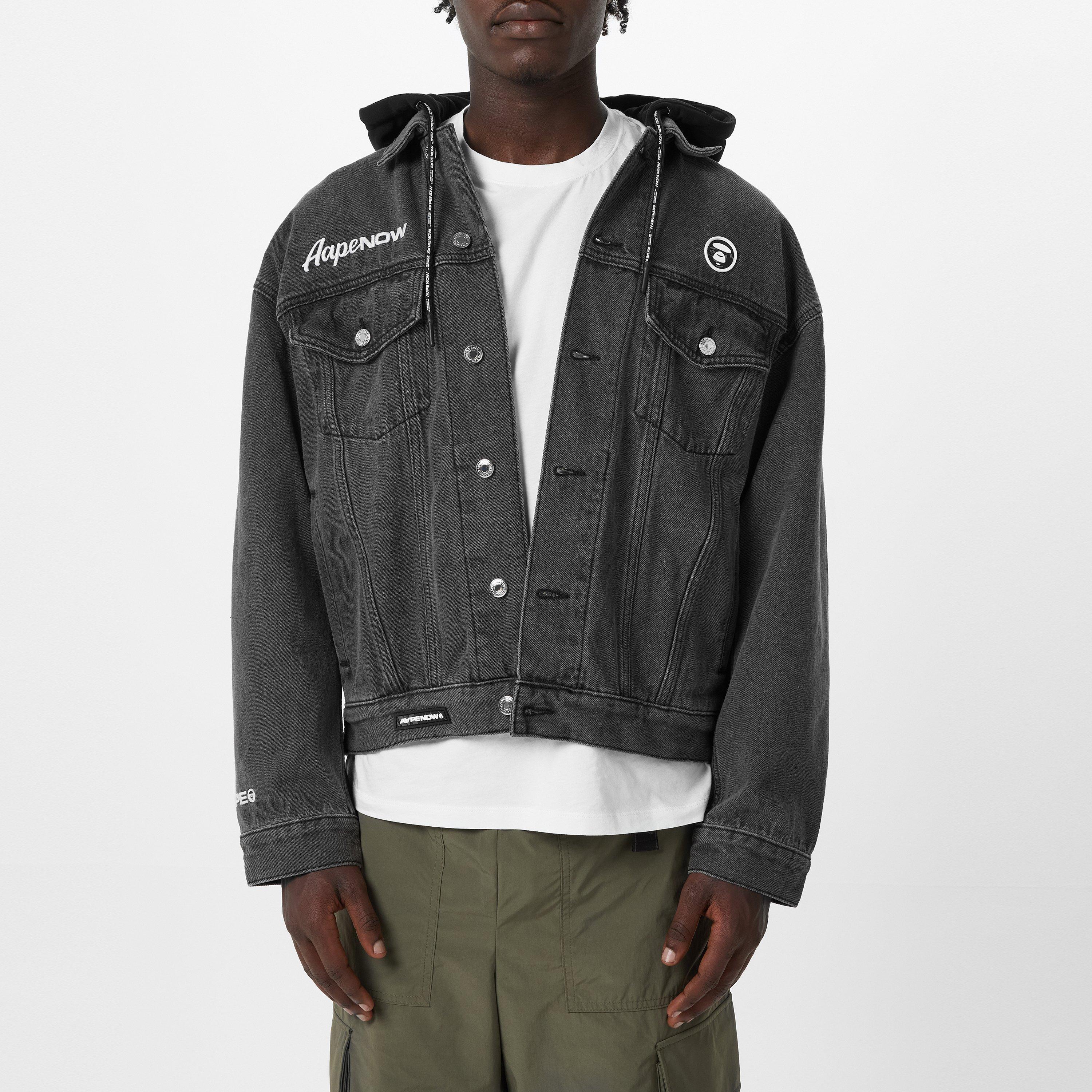 The AAPE Hooded Denim Jacket features detailed styling with urban appeal. Featuring a detachable hood and six practical pockets, this jean jacket delivers street-ready style with functionality.