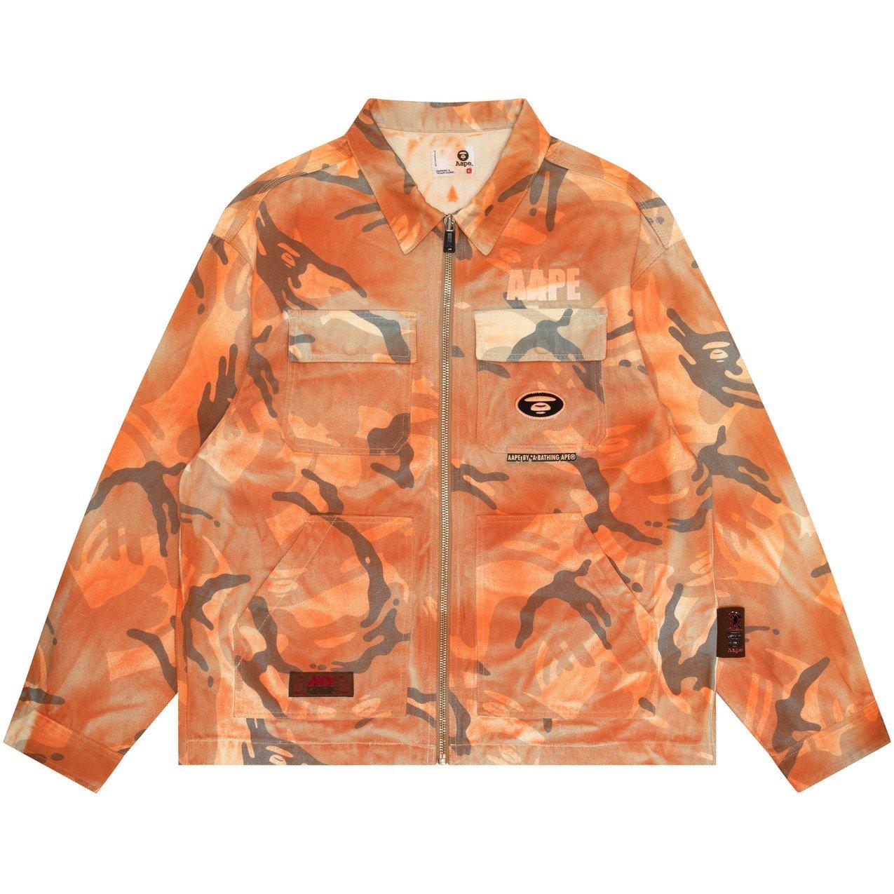The AAPE Wide Leg Camo Long Sleeve Zip Overshirt delivers streetwear credibility with its camouflage pattern and practical design. Featuring a shirt collar and zip fastening, this regular-fit fashion overshirt from BAPE's youth-focused line unites urban style with functionality.