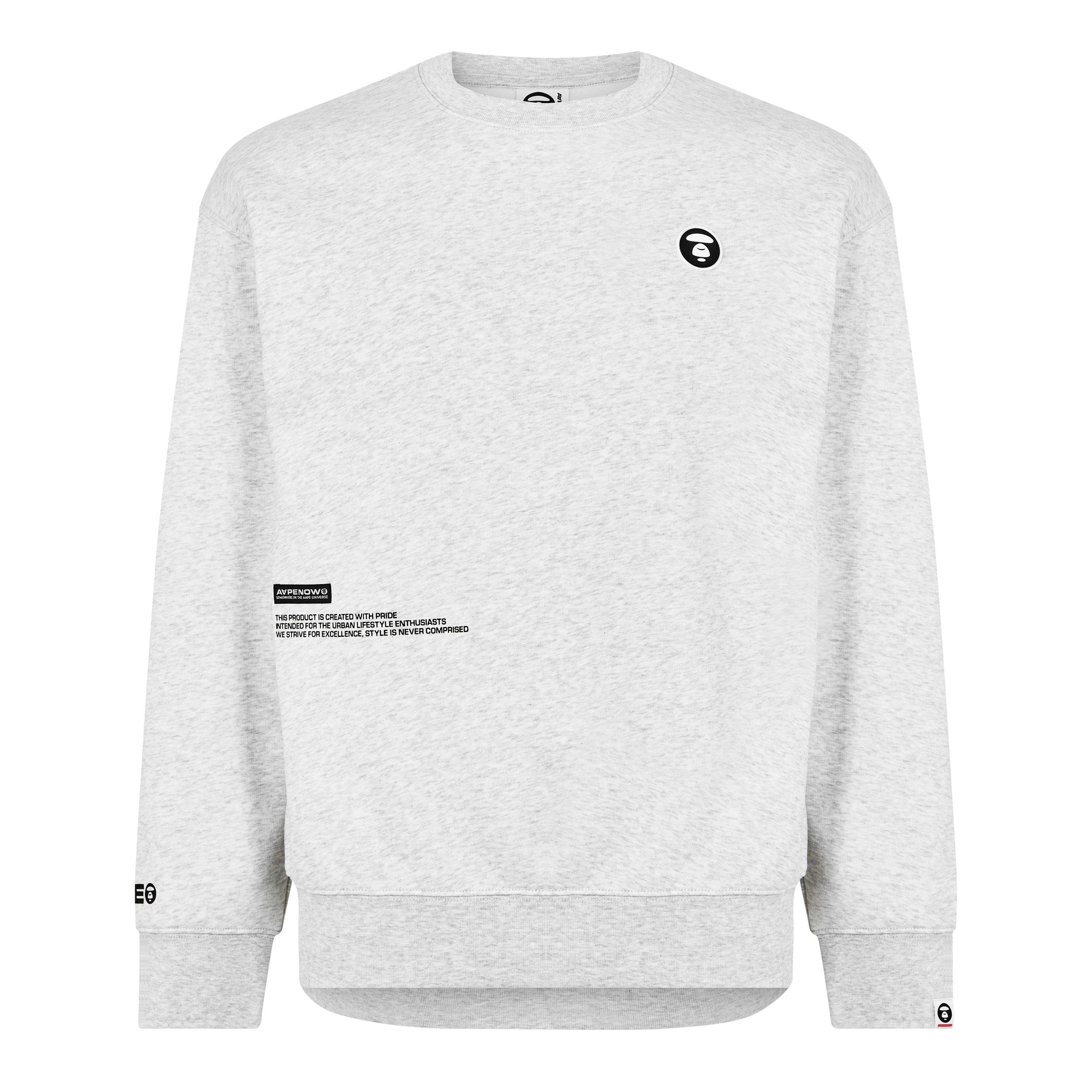 Iconic Japanese streetwear brand, AAPE are renowned for their urban-inspired contemporary designs, making this Now Badge Crew Sweatshirt the ideal addition to your off-duty attire. Expertly crafted from a premium midweight cotton blend composition with a brushed fleece lining, this classic silhouette features a crew neckline, long sleeves, a straight hem and ribbed trims. Decorated in a sleek, minimalist block colour, the look is adorned with the signature Moon Face patch to the chest, a text print to the front and the brand logo affixed to the rear and sleeves. The garment is signed off with a woven brand tag to the hem. Pair with relaxed joggers and crisp white trainers for the perfect casual aesthetic.