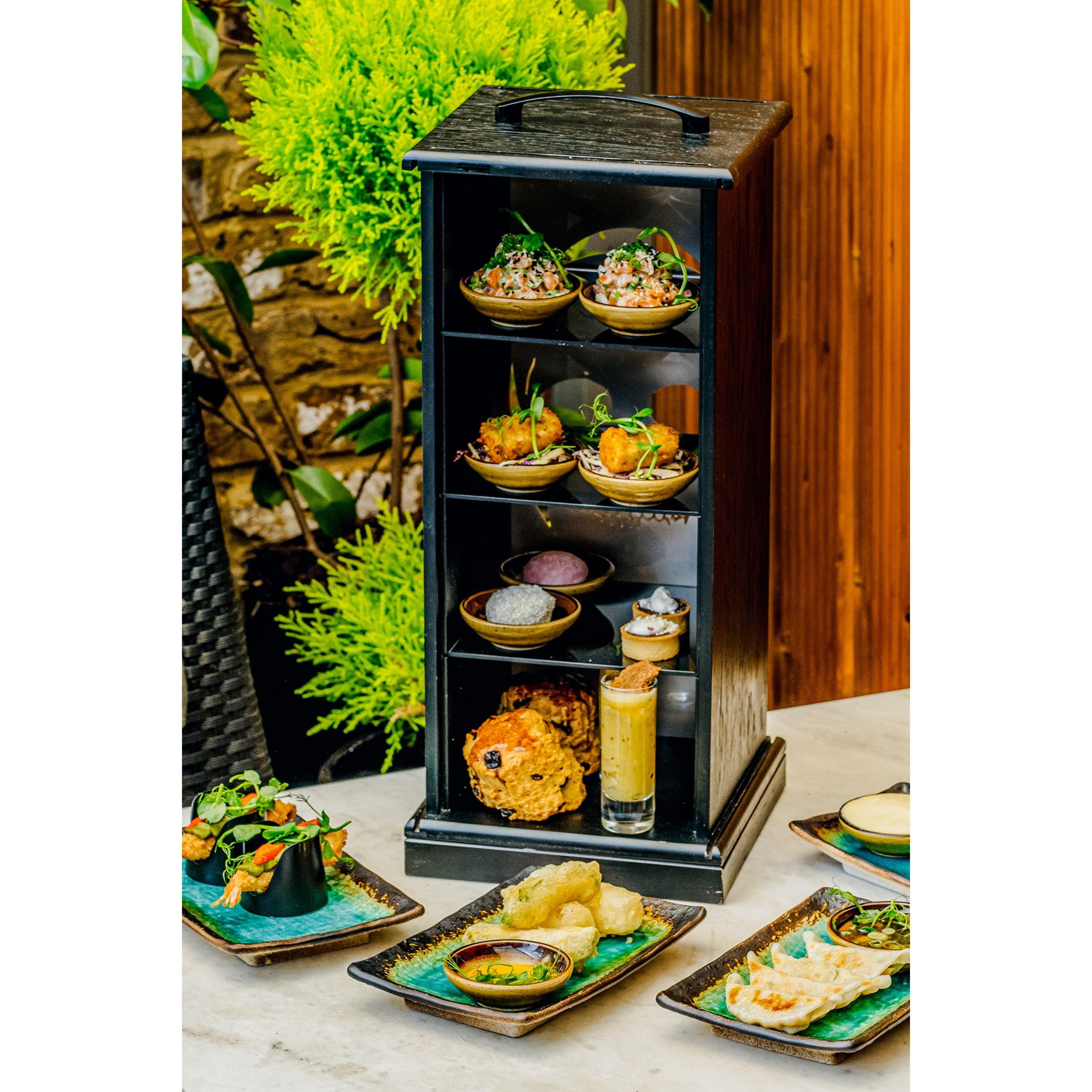 Japanese Afternoon Tea for Two Embark on a culinary experience with a difference. Guests are transported to the vibrant streets of Japan with this delightful fusion of Afternoon Tea with Asian influences. Some teas offer a Sushi inspired menu whilst others offer a medley of delights including vegetable onigiri and plum chicken karaage. Sweet treats are also on offer such as Pistachio Macaron, Mango & Passionfruit Finger, Coconut Milk Ice Cream or Lemon Sorbet, some also offer a glass of Prosecco to enjoy.