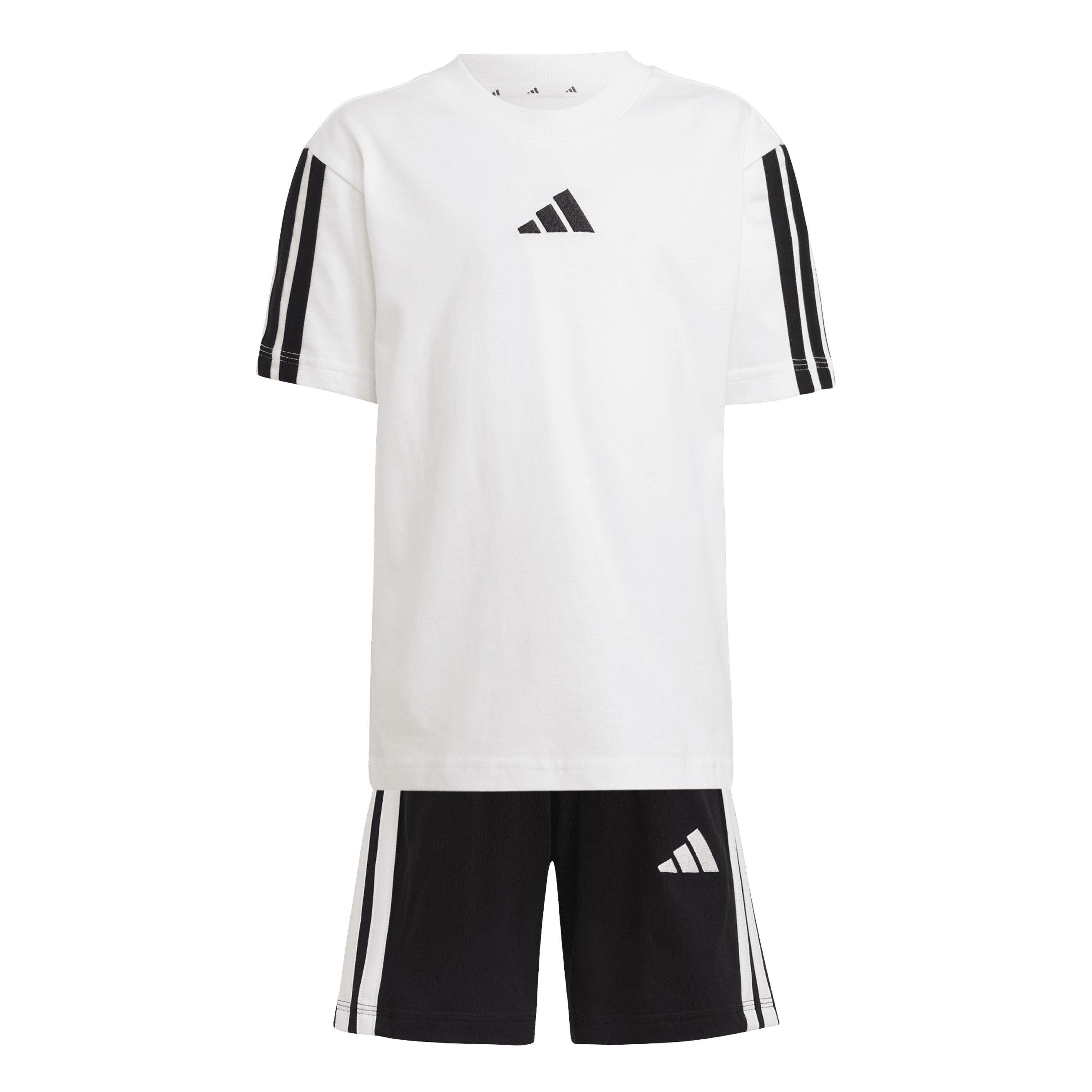 Kids are always on the move, so they need clothes that can keep up. This adidas t-shirt and shorts set is made for everyday adventures thanks to the soft, durable fabric. The classic design means each piece is versatile enough to mix and match with other tops and bottoms in their closet. The 3 Bar Logos sign off the look with a sporty touch.
