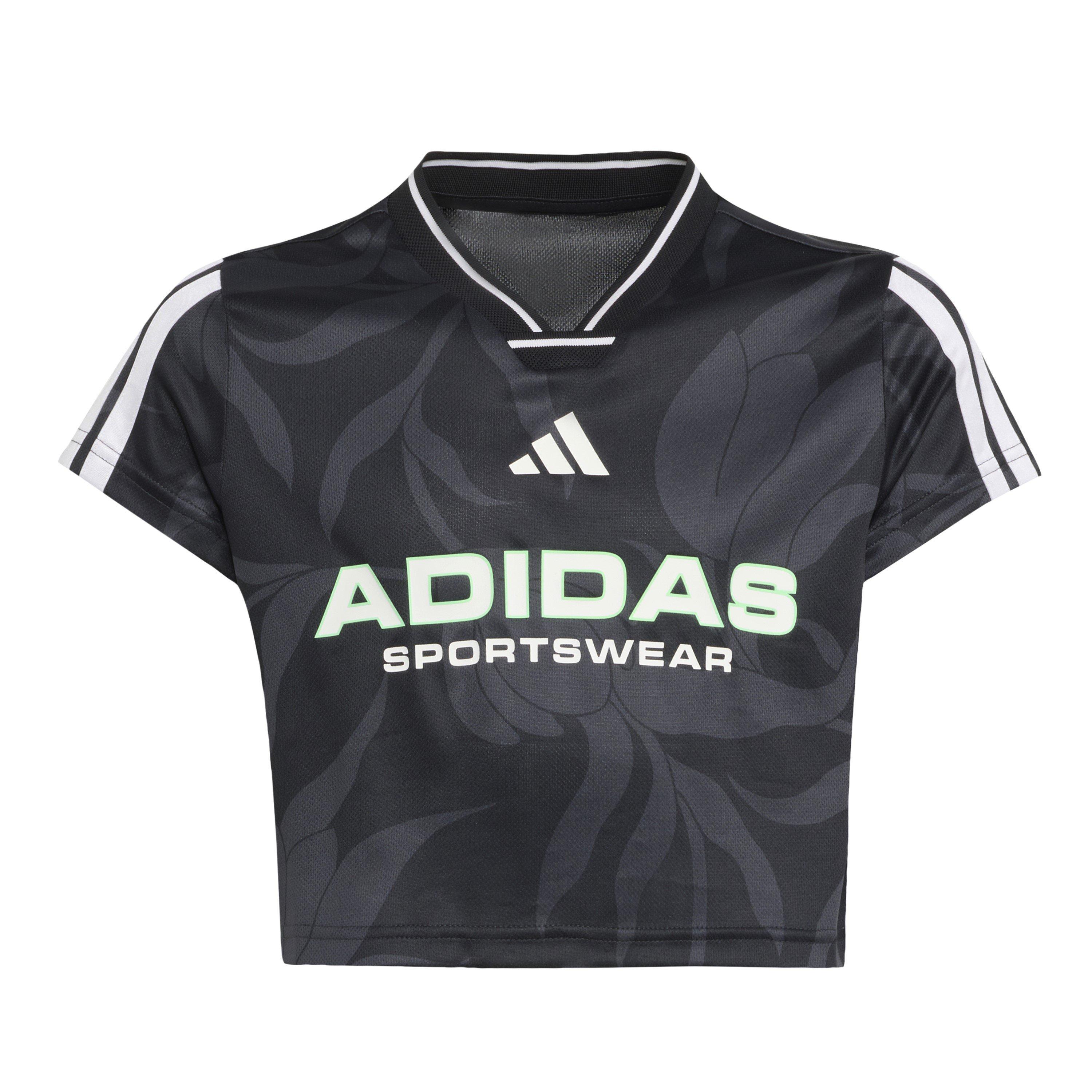This juniors' football-inspired tee from the House of Tiro collection takes the iconic 3-Stripes and 3 Bar Logo and reimagines them for the fashion-forward fan. The soft doubleknit fabric keeps you comfortable so you can rep your team in style. Pair it with high-waisted shorts for a winning match-day look.