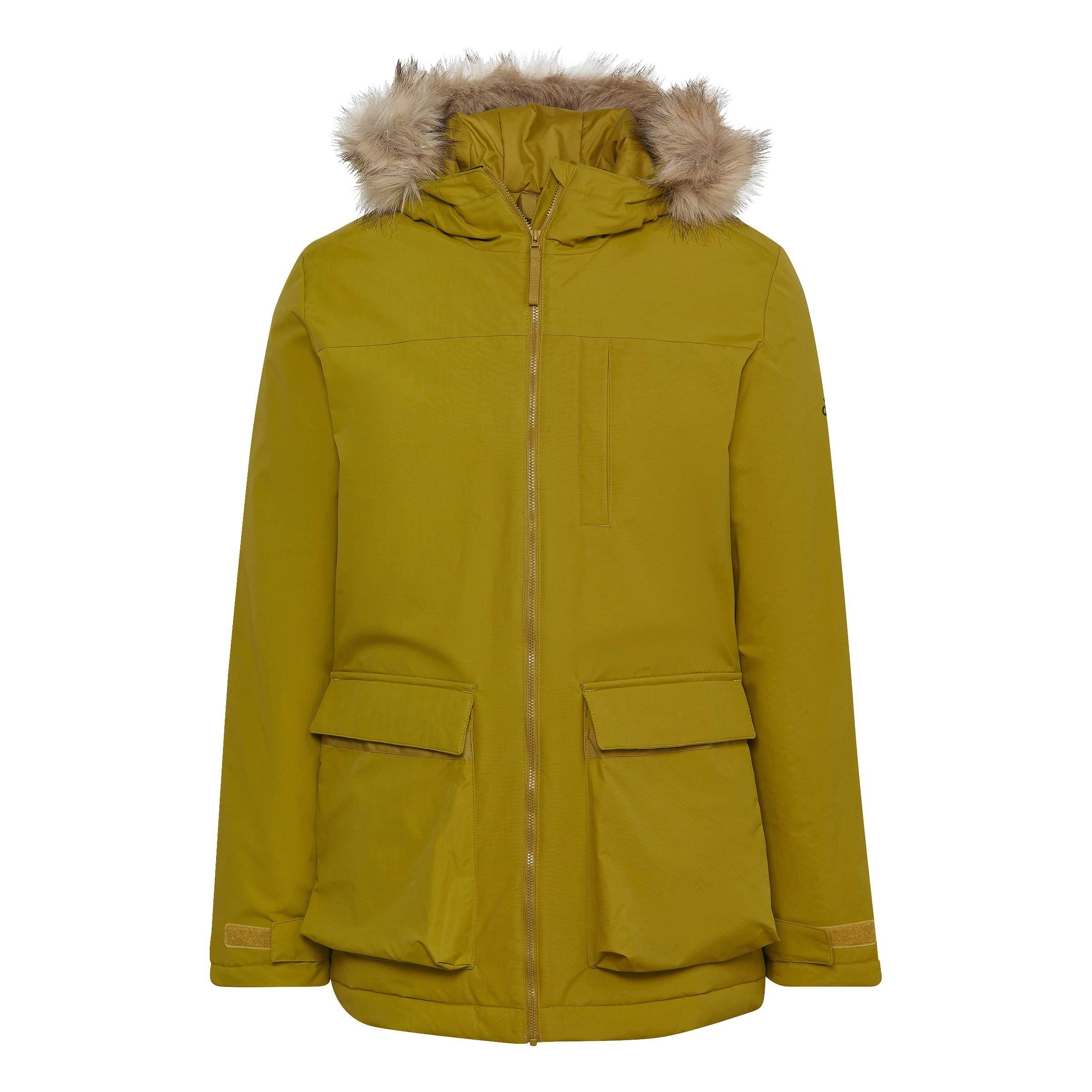 - Full-zip design with snap-off hood fur for protection