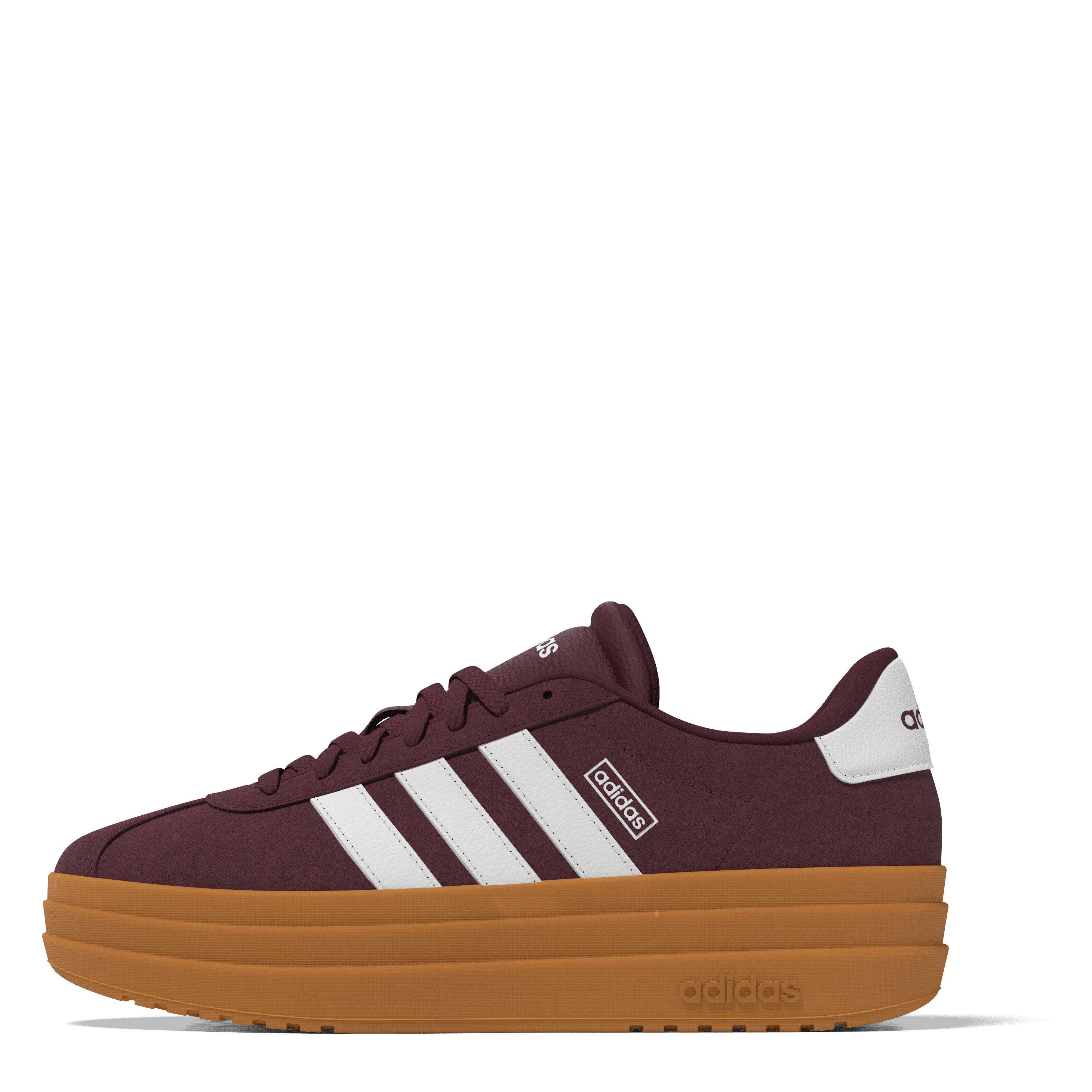 With their solid base colour and contrasting heel counters, these women's platform trainers make a bold statement wherever you go and effortlessly style into any ensemble. adidas' iconic 3-Stripes motifs on the sides and the striking lateral lettering on the tongues, heels, and midsoles ensure instant brand recognition with a pinch of athletic flair. Whether heading out to meet friends, exploring the city, or lounging at home, adidas' VL Court Bold Shoes are a perfect choice. Embrace your individuality, turn heads, conquer the streets, and don't look back!