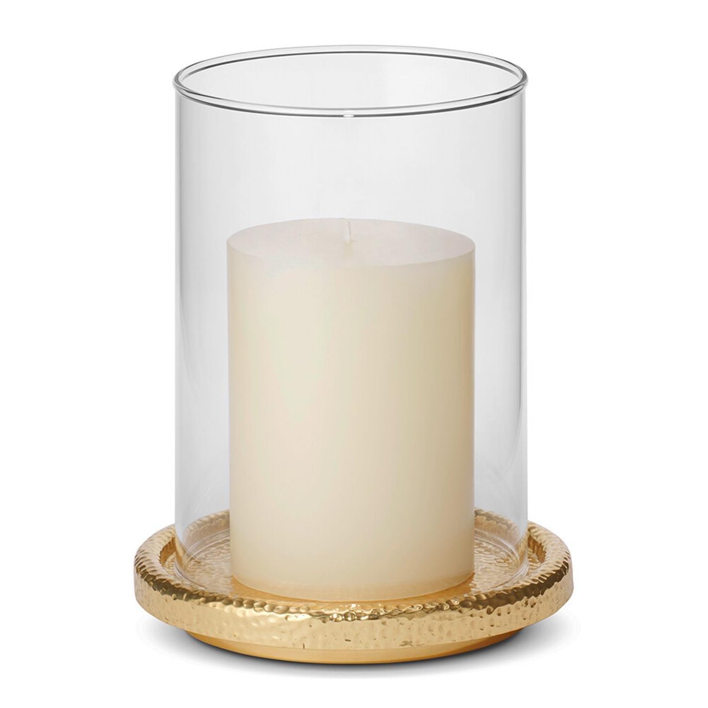 Add a little luxury to your home with this Tulln hurricane from Aerin. In a compact size, this hurricane holds a single pillar candle. With a hammered brass base and clear glass cylinder, it oozes timeless appeal.