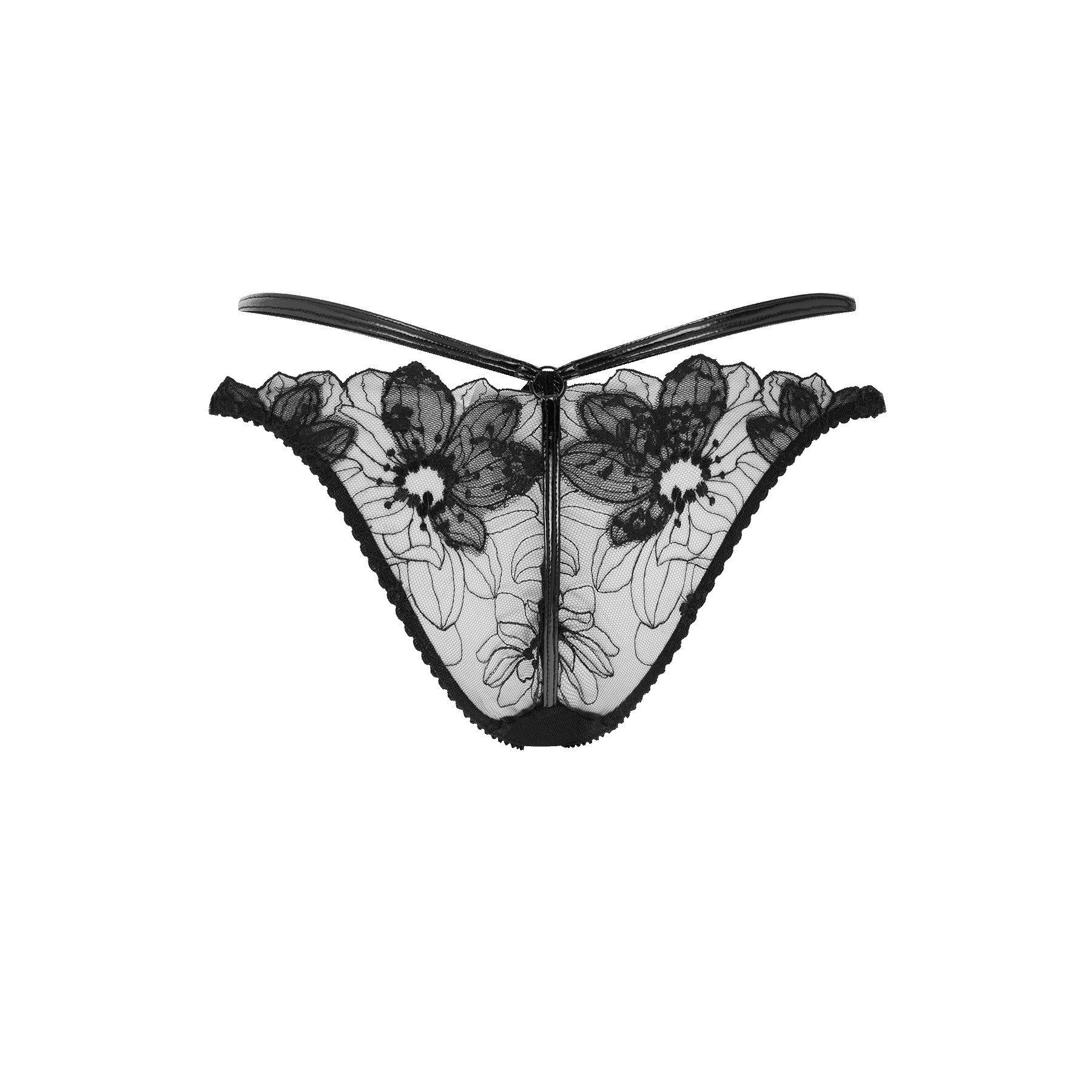 Black briefSheer tulle with floral embroidery PVC strapping details Wear with the rest of Litzia's range for after-dark glamour