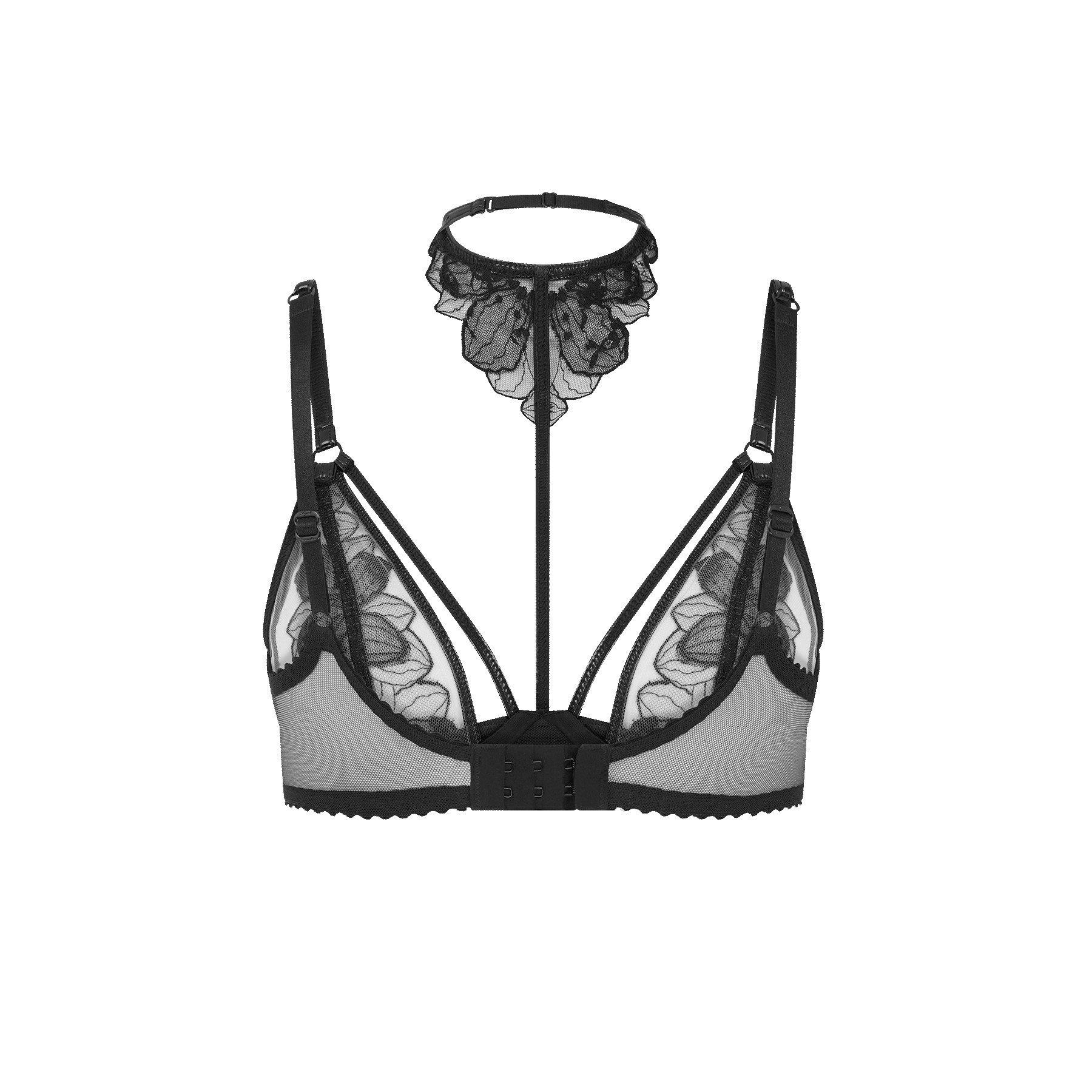 Sheer tulle cups with floral embroidery
