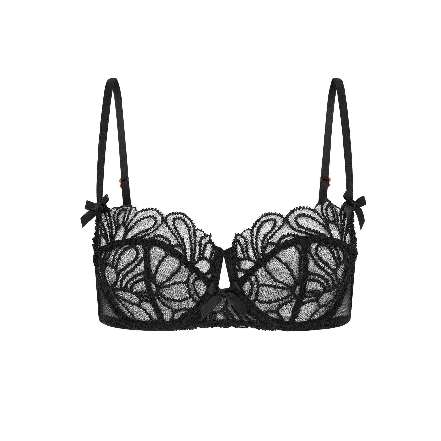Sculpted from daisy-embroidered Italian tulle, it,s finished with delicate bows and gold hardware for that saint-like glow, but with sinful intentions. The Nelle bra was made for defying gravity. and the rules. Pair with the full Nelle set to add some AP desire to your everyday.For hygiene reasons, this item cannot be returned for exchange or refund.