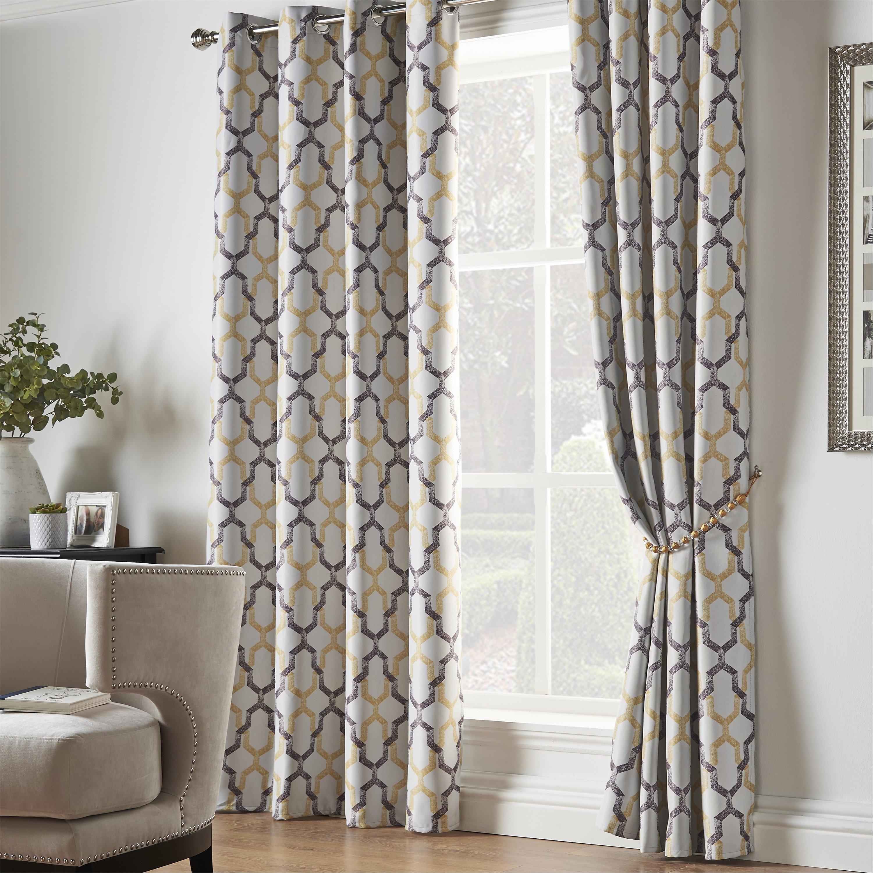 Printed satin feel curtains that will block out 95% light. Designed with a triple weave fabric so do not require linings. Finished with an eyelet ring top heading.