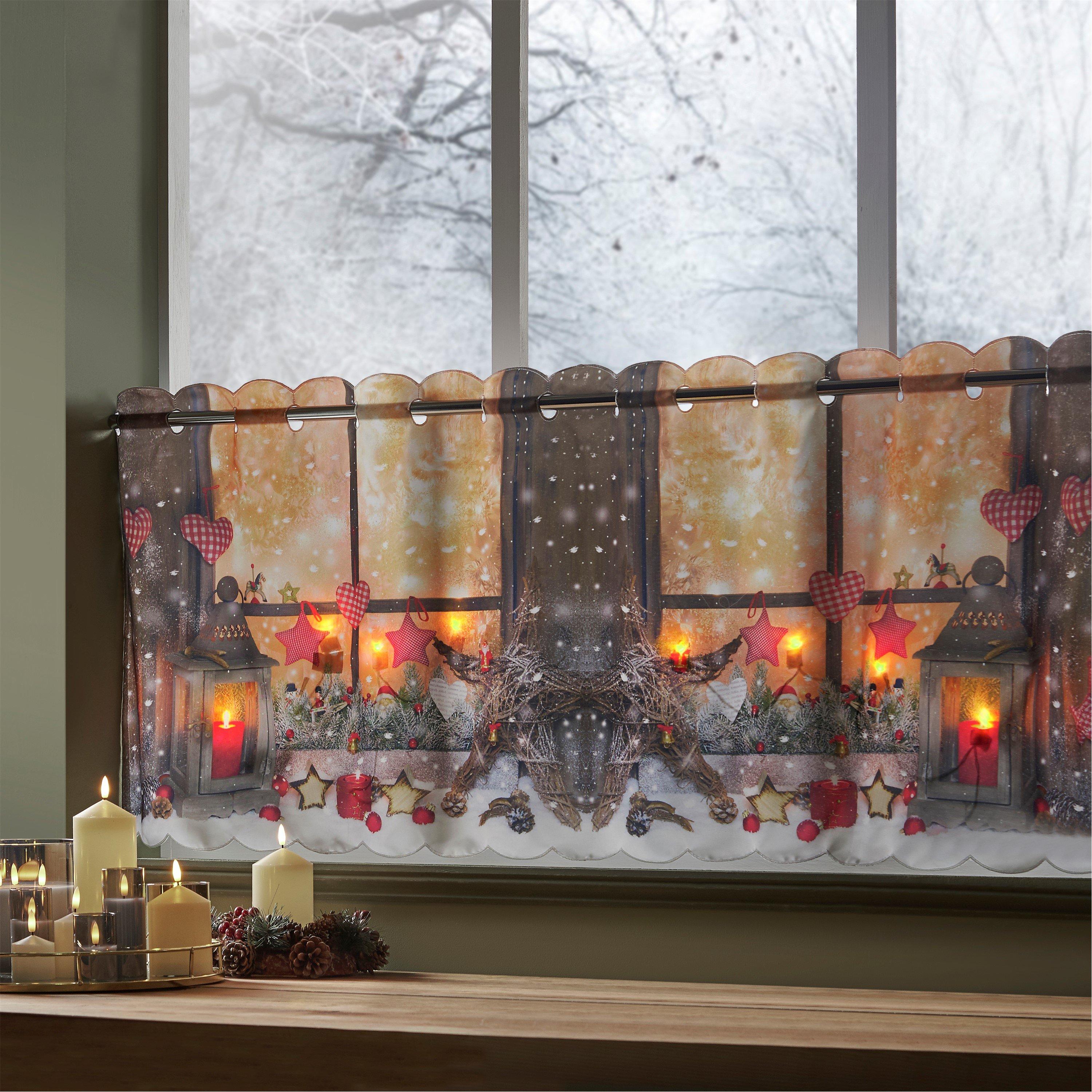 /Home/Christmas/Trees and Decorations/Christmas Ornaments & Figurines/Lantern LED lights voile Cafe Curtain Panel