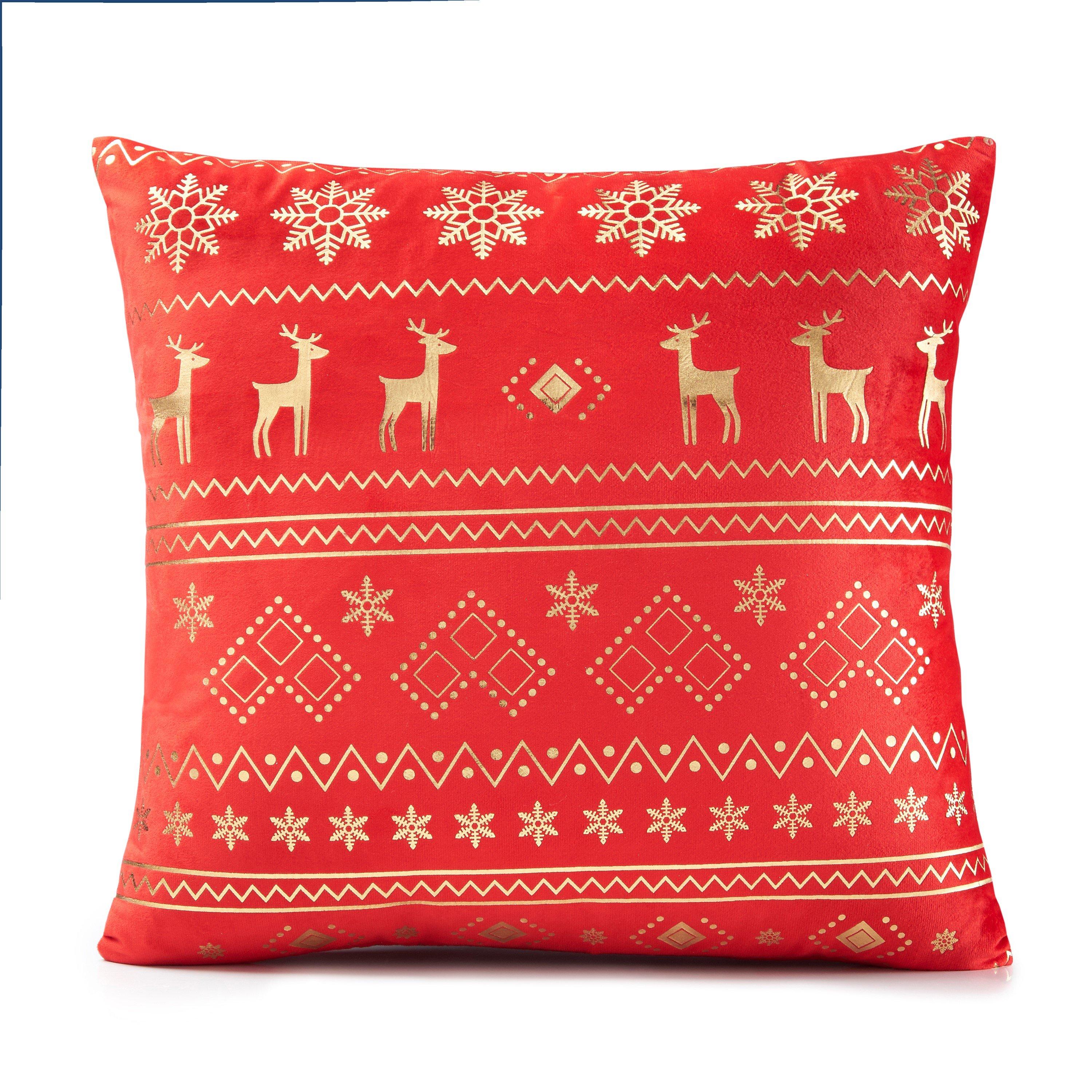 /Home/Christmas/Trees and Decorations/Christmas Ornaments & Figurines/Reindeer Red & Gold Christmas Cushion