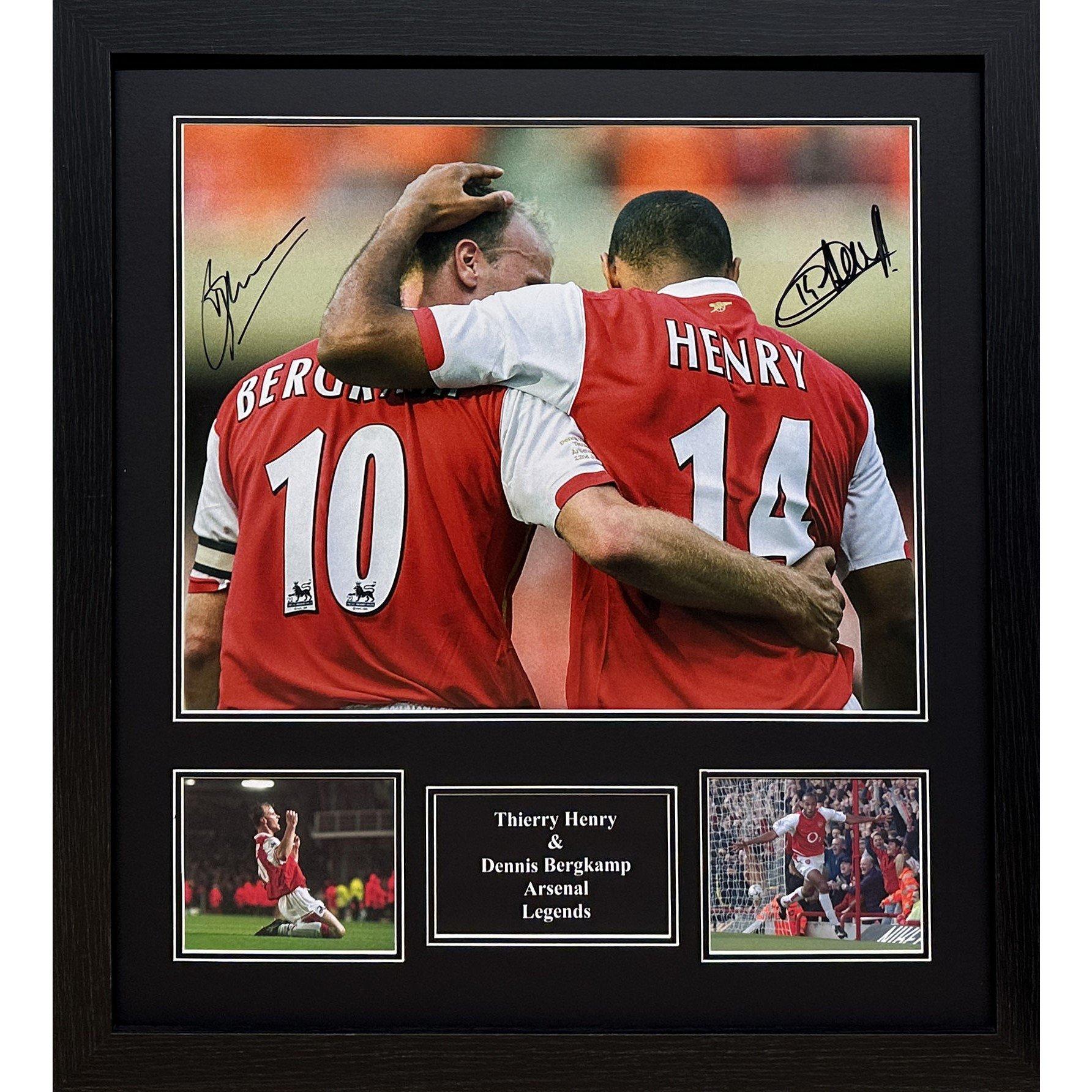 Here is a framed 16x20 inch iconic photo, signed by Arsenal Legends Thierry Henry & Dennis Bergkamp The item was personally signed by Thierry in London, 19th May 2022, at our exclusive official private signing session and at our signing with Dennis Bergkamp, in London, 21st April 2022. The item comes with an Allstarsignings certificate of authenticity which will have photographic proof inserted into it
