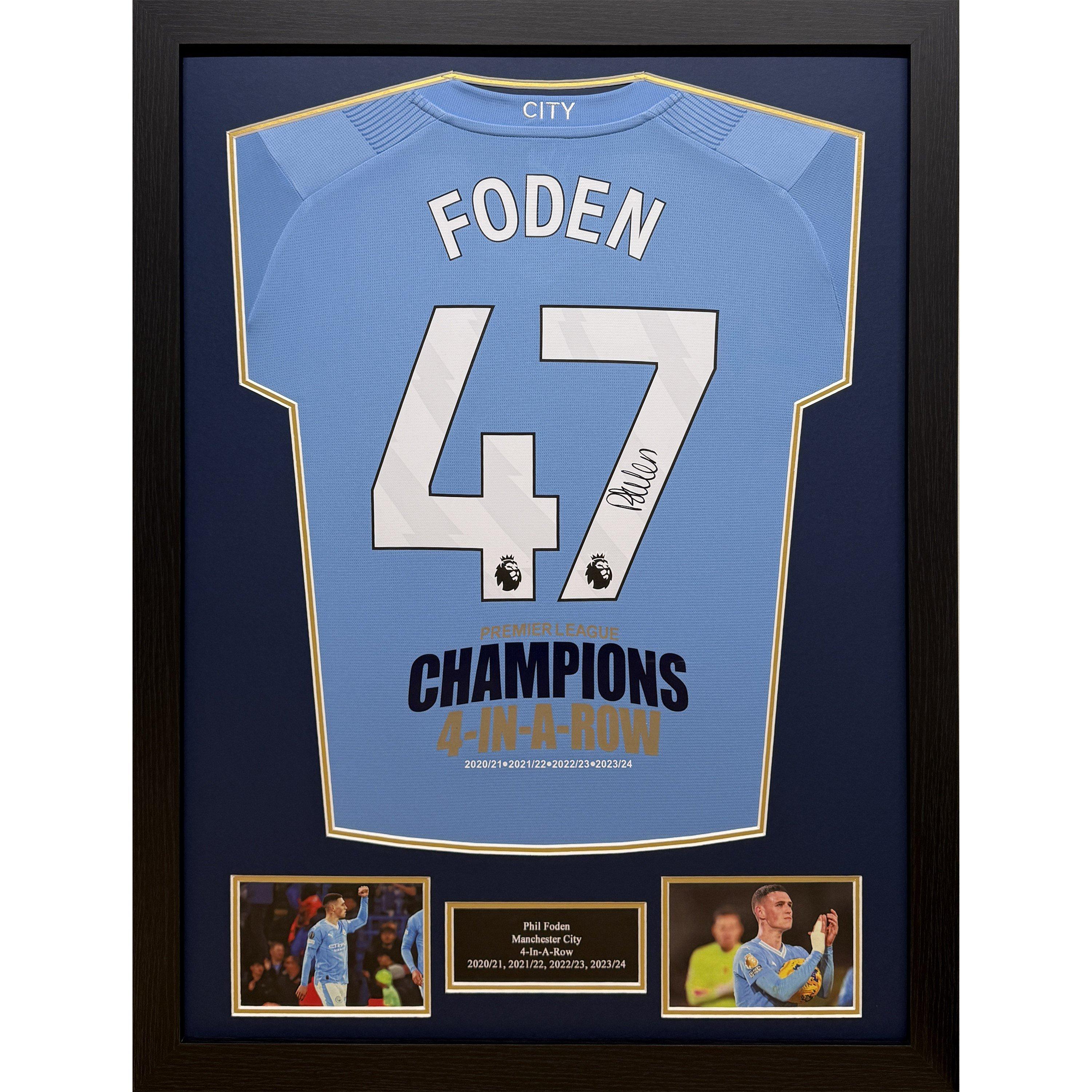 /Home/Sports & Fitness/Football/Football Shirts and Kits/Football Kits/Premier League/Manchester City/Phil Foden signed Manchester City 4 in a row shirt