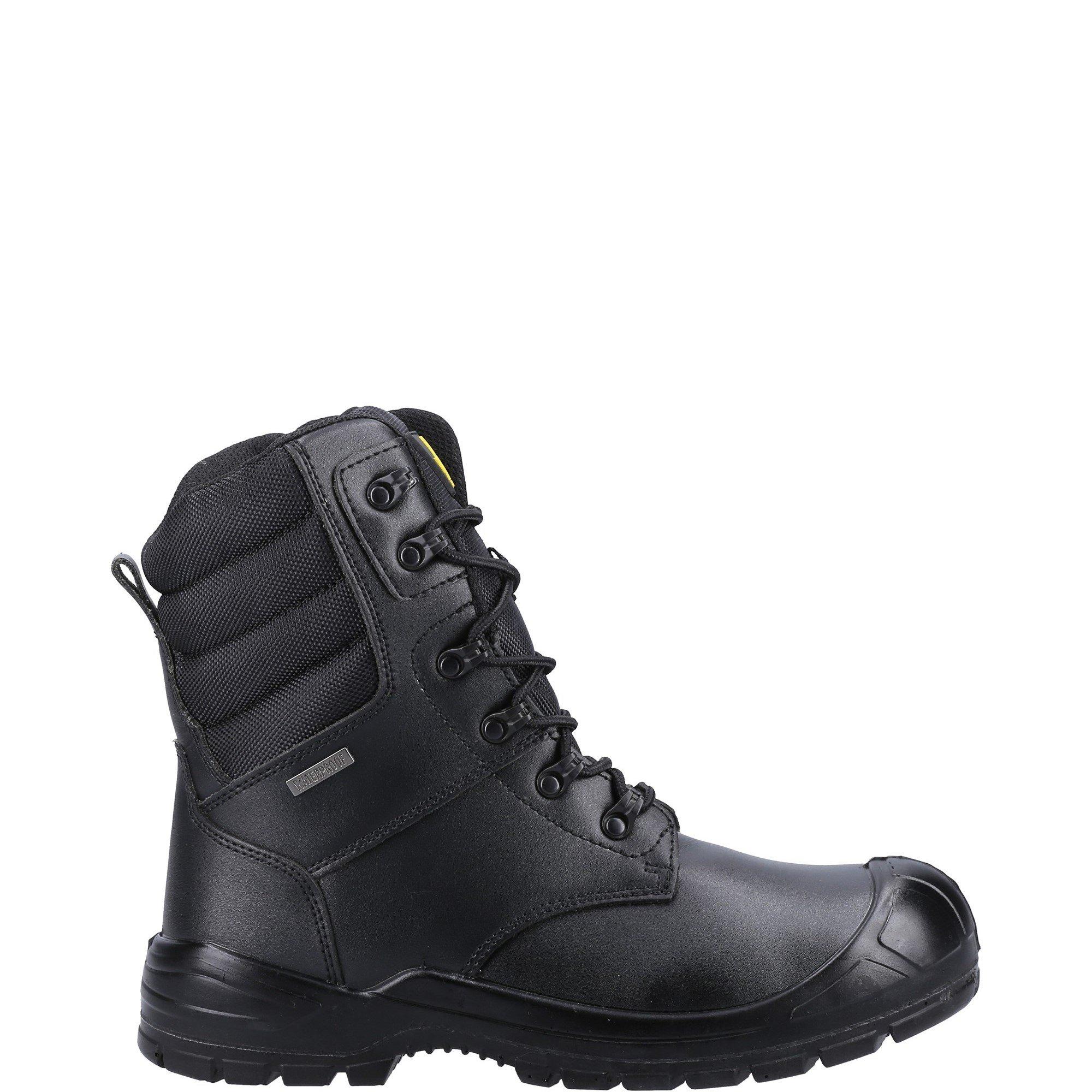 Fully waterproof Hi-Leg safety boot with side zip for quick access, steel toe, steel midsole, padded mesh collar, PU scuff cap, moulded PU footbed for all day comfort and dual density PU outsole.