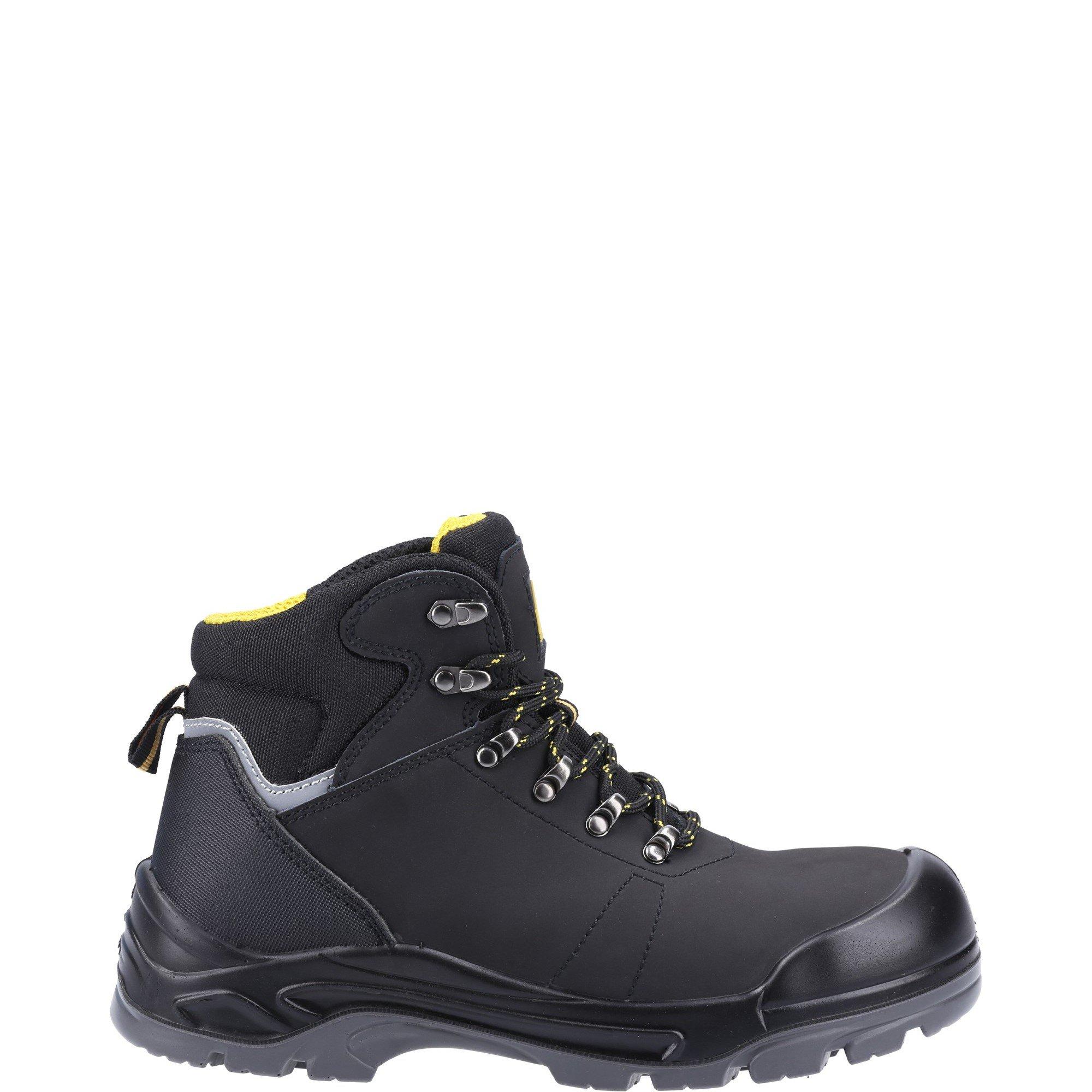 Lightweight safety boot with water-resistant leather upper, heel reflector panel, injected PU scuff cap, steel toe, steel midsole and dual density PU outsole