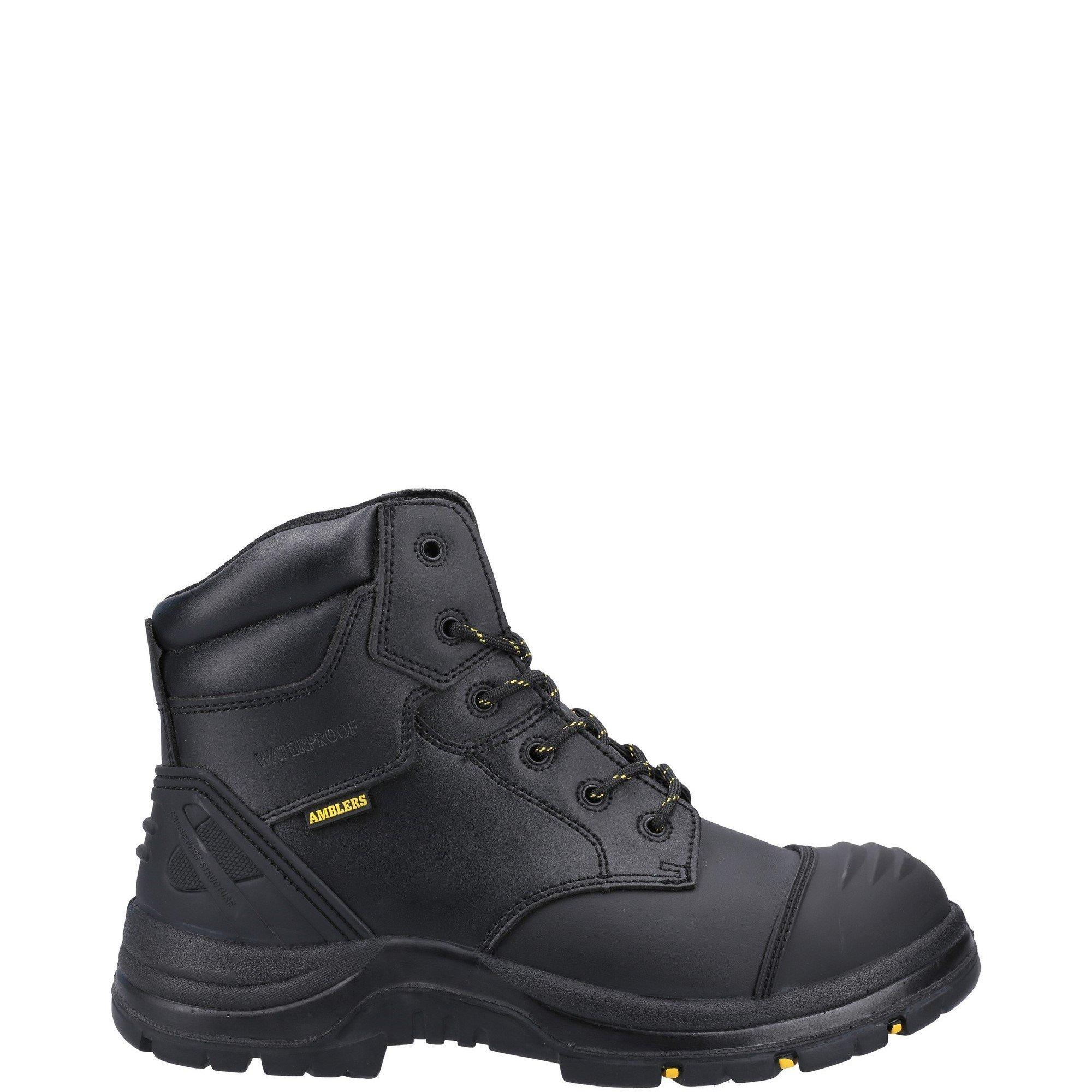 Unisex tough and durable waterproof metal free safety boot. Crafted with water resistant leather and composite toe cap. Rubber sole heat resistant to 300 degrees. Twin Padded PU Collar and Removable PU Footbed.