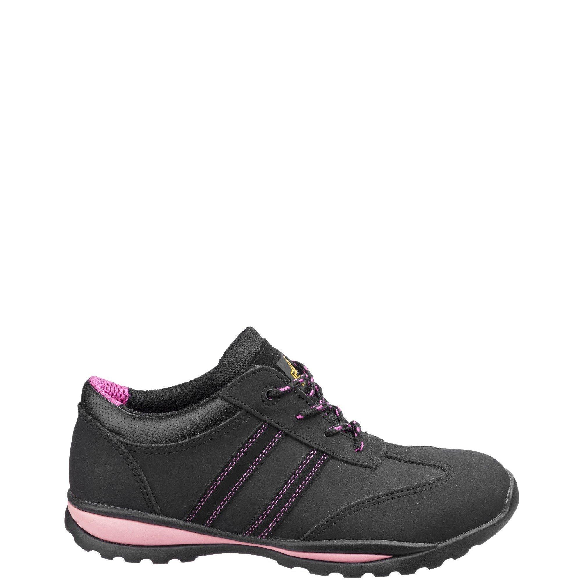 Women's modern lightweight safety trainer crafted with Nubuck Leather, PU padded collar, anti-static and durable full Rubber outsole.