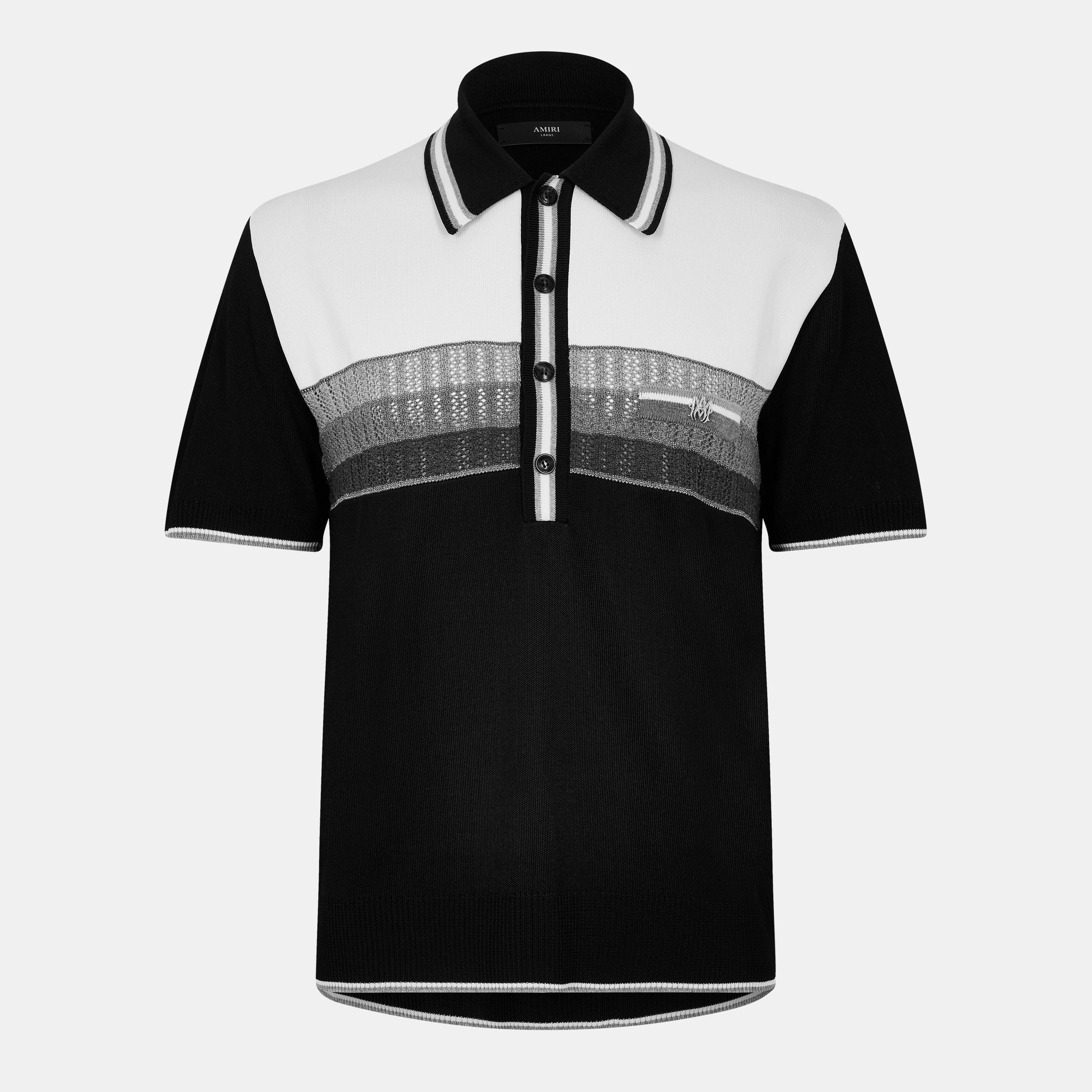 Amiri's Striped Knitted Top features a stripe pattern throughout. This knitwear piece offers both comfort and durability in a men's top that maintains its shape through its knitted form.