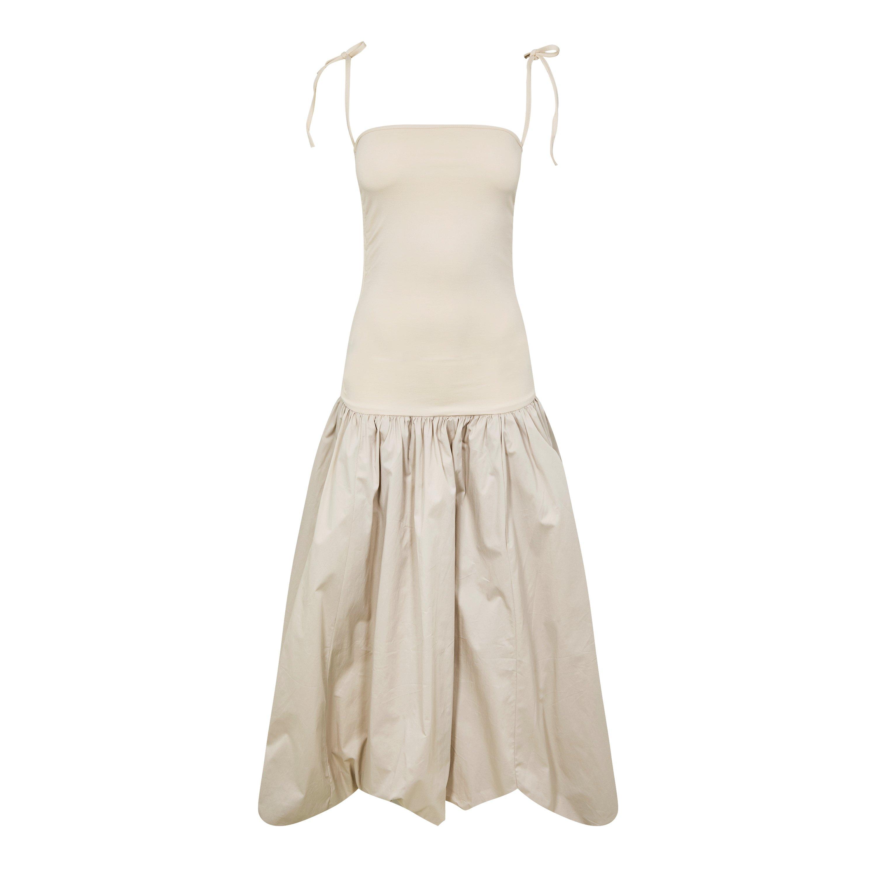 Sculptural proportions define the AmyLynn Alexa dress. This ultra-mini design features shoulder ties and a peplum for a contemporary feminine profile.