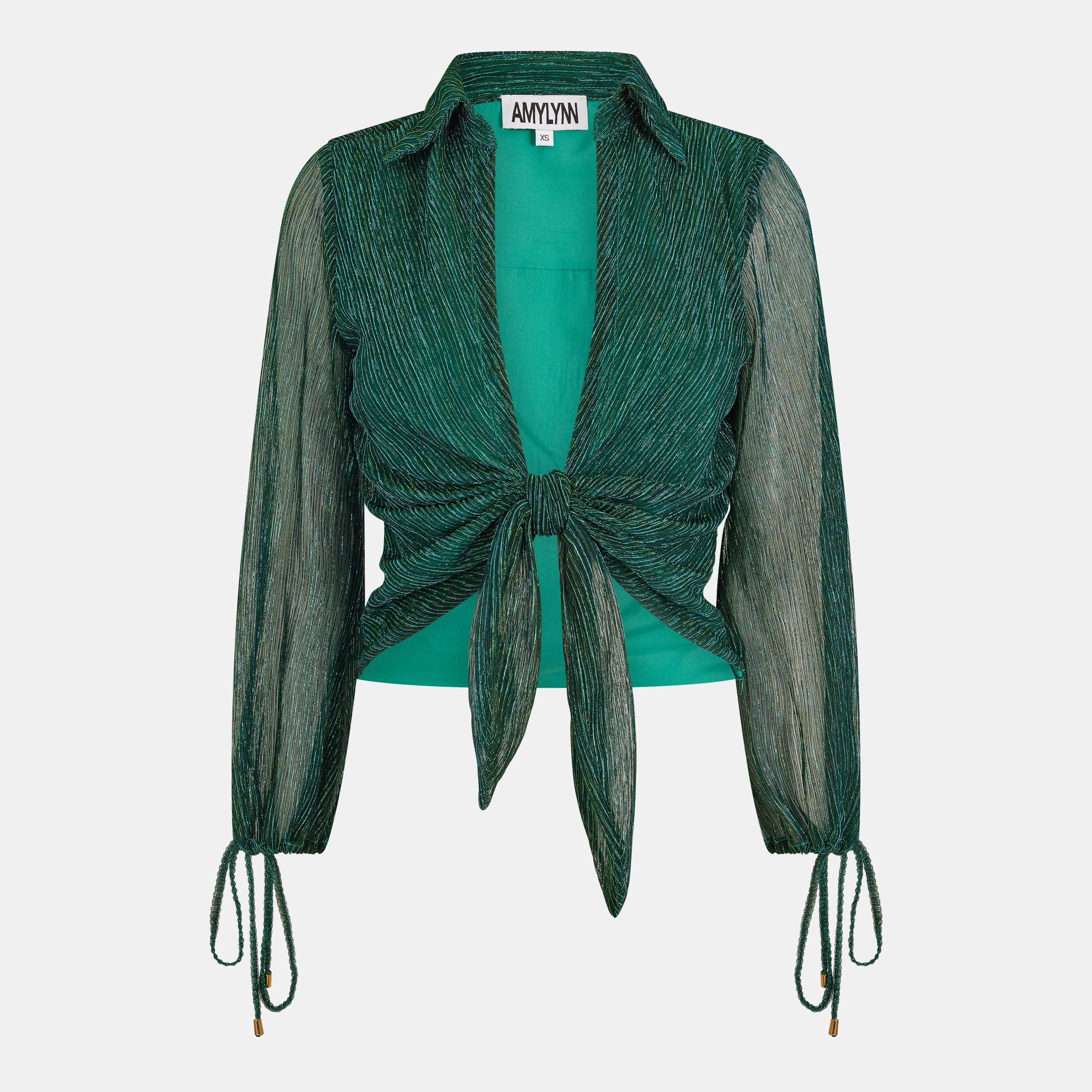AmyLynn's Lurex Long-Sleeve Blouse captures light with its metallic thread detailing. The elongated shape offers a flattering drape, making this a standout fashion piece.