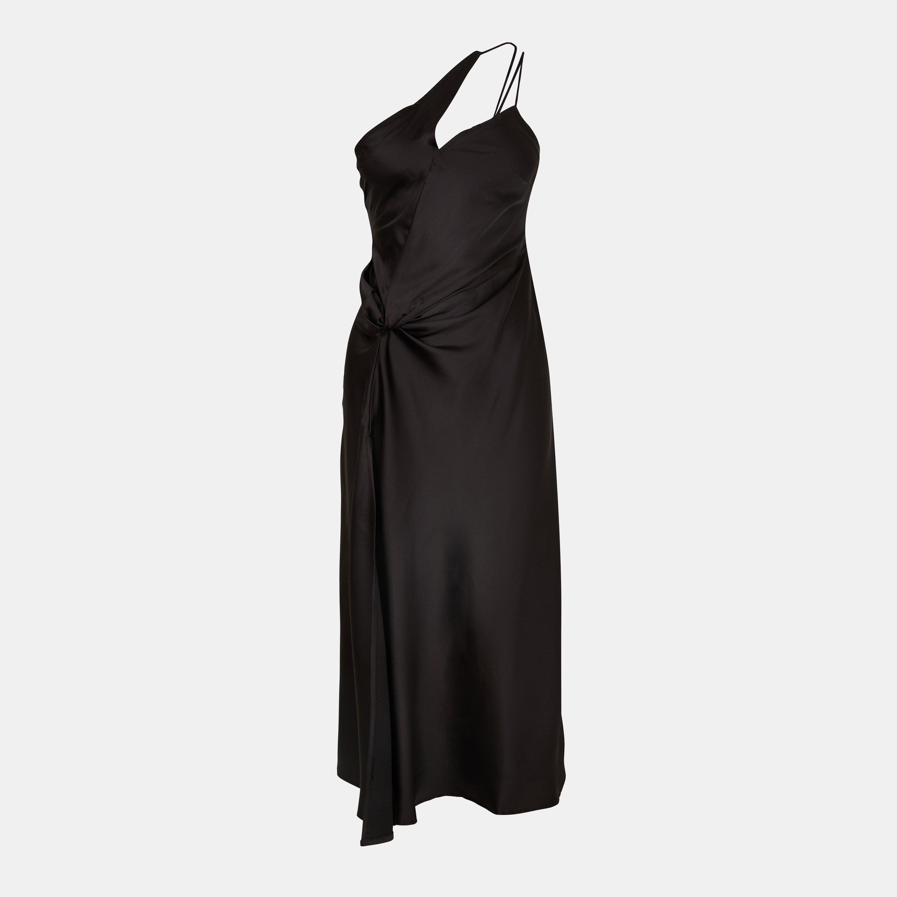 AmyLynn's Maxi Dress offers a fluid form with its smooth, lustrous fabric and tailored shape. This long clothing piece features subtle draping with clean structure for a streamlined profile, ideal for evening events, cocktail occasions, summer gatherings, or day to party transitions.