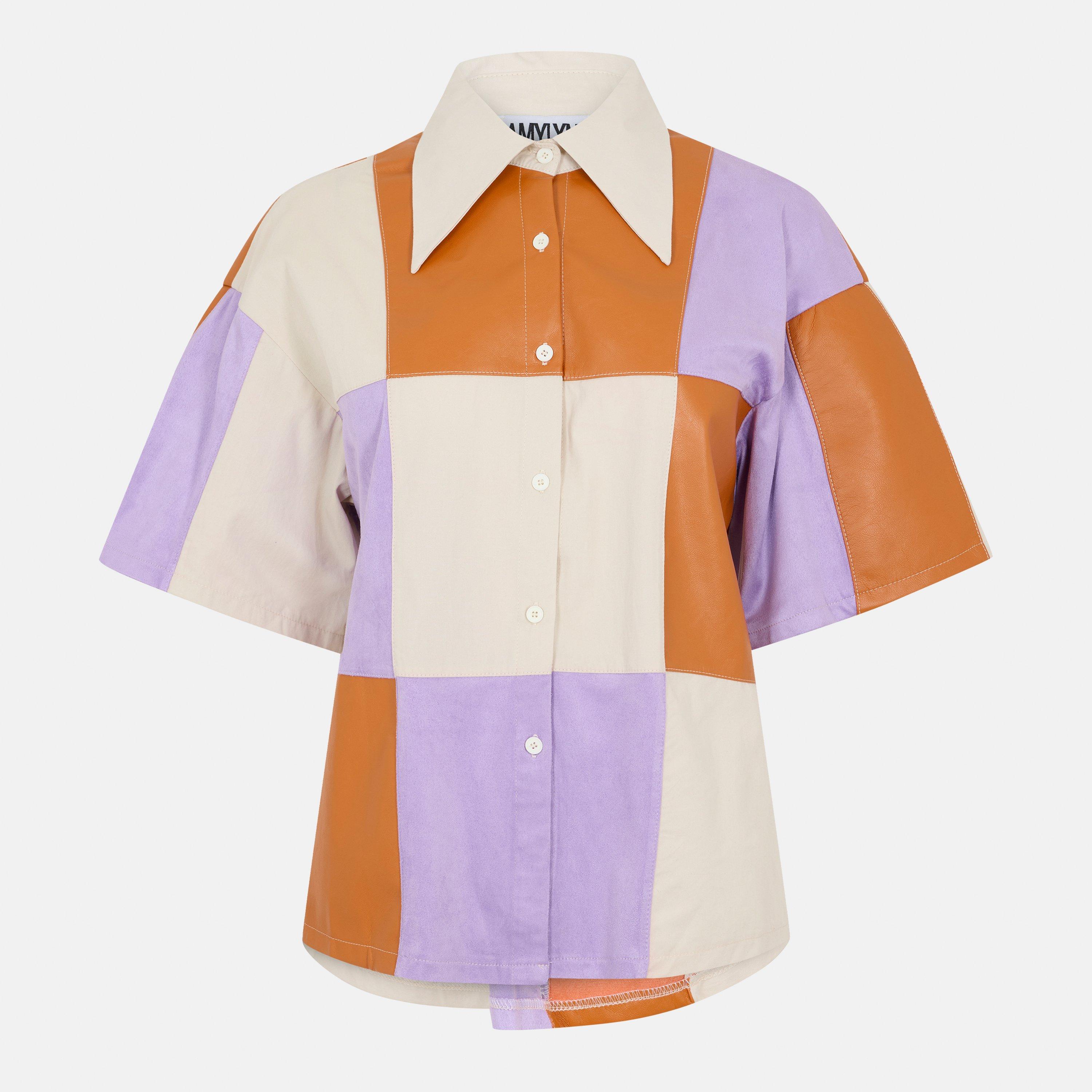 AmyLynnShort-Sleeve Patchwork Patterned Shirt