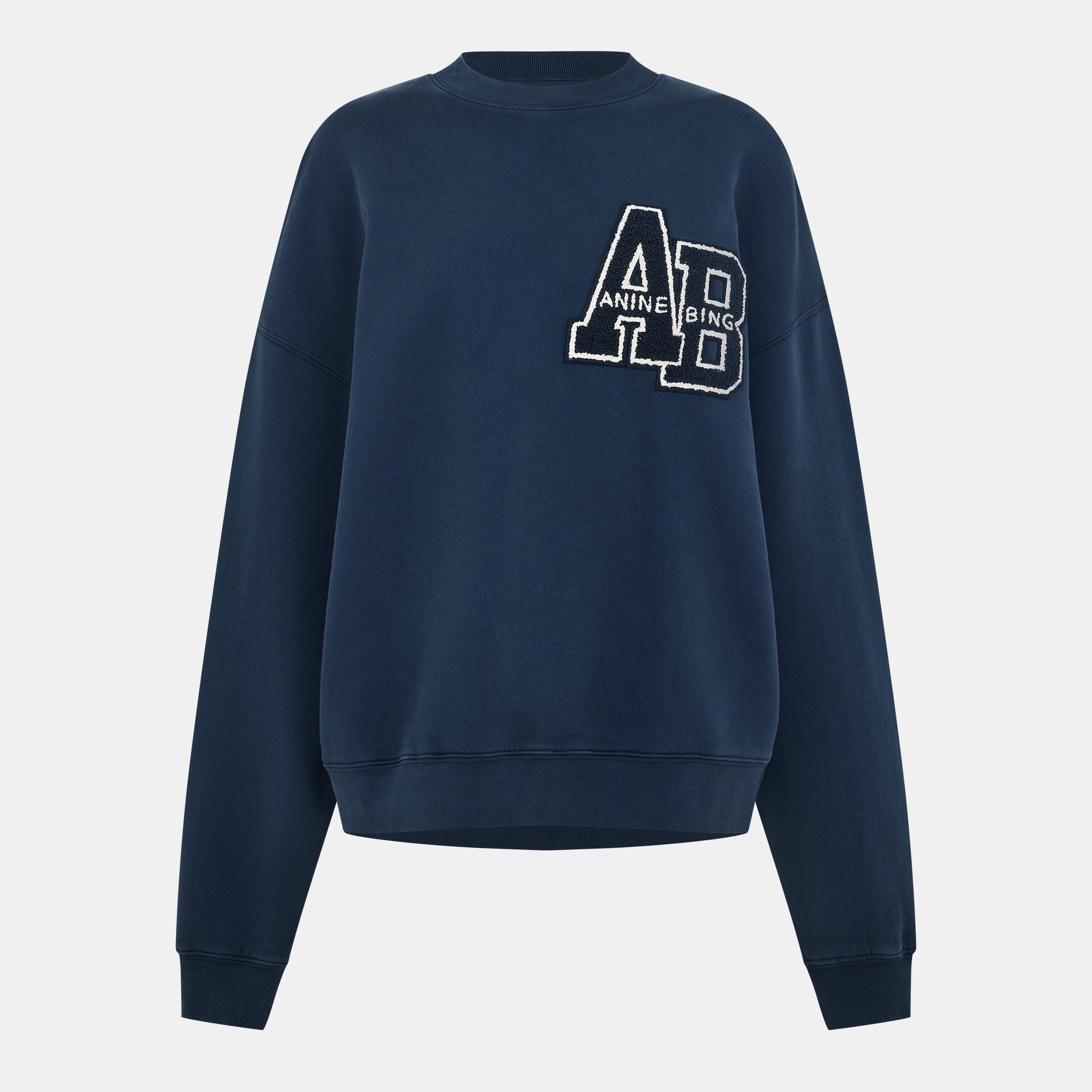 Anine Bing Women's Miles Letterman Cotton Long Sleeve Oversized Crew Sweatshirt