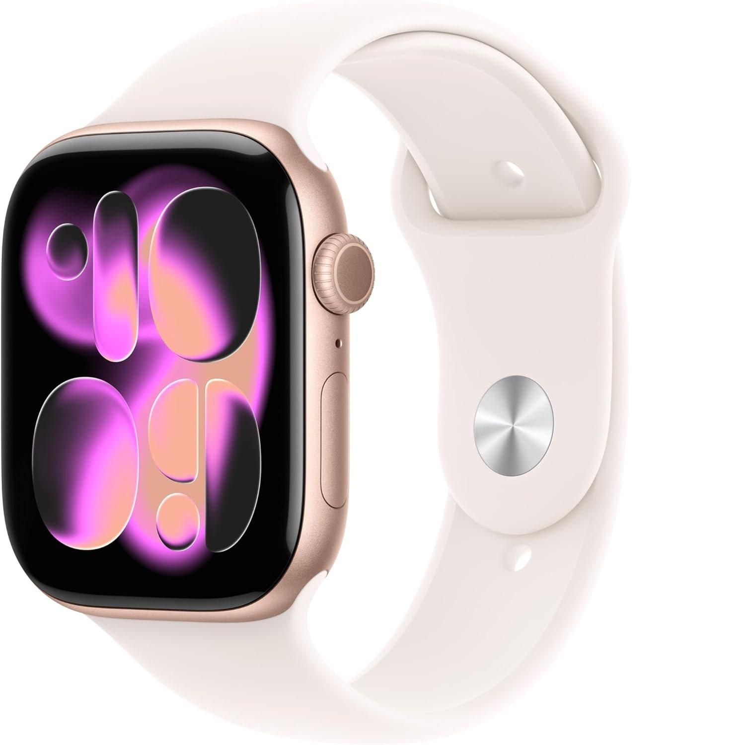 – HYPERTENSION NOTIFICATIONS – Apple Watch Series 11 can spot signs of chronic high blood pressure and notify you of possible hypertension. – KNOW YOUR SLEEP SCORE – Sleep score provides an easy way to help track and understand the quality of your sleep, so you can make it more restorative. – EVEN MORE HEALTH INSIGHTS – Take an ECG anytime. Get notifications for a high and low heart rate, an irregular rhythm and possible sleep apnoea. View overnight health metrics with the Vitals app and take readings of your blood oxygen. – STUNNING DESIGN – Thin and lightweight, Series 11 is comfortable to wear round the clock – while exercising and even when you're sleeping, so it can help track your key metrics. – A POWERFUL FITNESS PARTNER – With advanced metrics for all your workouts, plus features like Pacer, Heart Rate Zones, training load, Workout Buddy powered by Apple Intelligence from your nearby iPhone, and more. Apple Watch Series 11 also comes with three months of Apple Fitness+ free. – BIG BOOST IN BATTERY LIFE – With up to 24 hours of normal use. And fast charge for up to 8 hours of normal use in just 15 minutes. – BUILT TO LAST – With a super-durable glass display that's 2x more scratch resistant than Series 10. Series 11 also has a water resistance rating of 50m and is IP6X dust resistant. – SAFETY FEATURES – Series 11 can detect a hard fall or serious car crash, automatically help connect you with emergency services and notify your emergency contacts. Check In can automatically notify a loved one when you've arrived at your destination. – STAY CONNECTED – Send a text, take a call, listen to music, use Siri and get notifications. Apple Watch Series 11 (GPS) works with your iPhone or Wi-Fi to keep you connected.