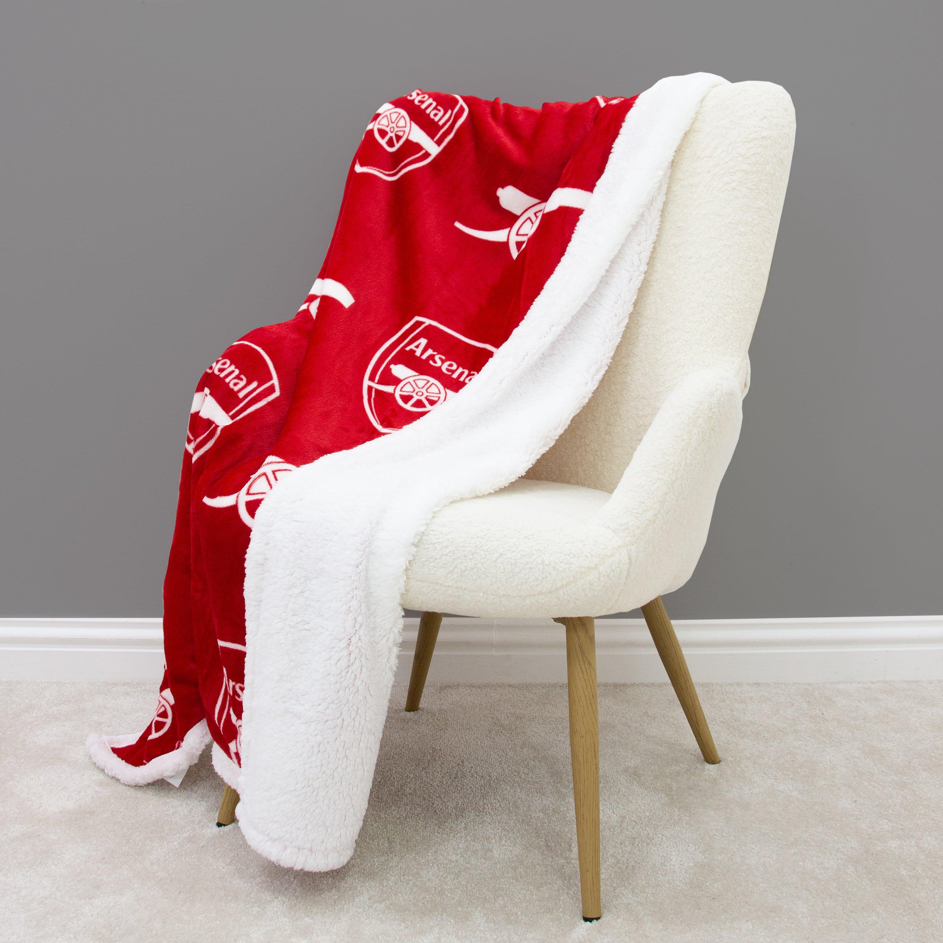 Come on you Gunners! Perfect for Gooners, young or old, this officially licensed Arsenal Football Club fleece blanket is great all year around. Inspired by Arsenal Football Club’s team colours, this soft fleece blanket features an extra warm sherpa layer that’s perfect for the winter months. Set on a red background, this fleece blanket has a repeating pattern of the Arsenal badge and the cannon crest in white. Great all around the house, either as an extra layer in bed, lazing on the couch watching a film, keeping yourself comfortable when gaming, keeping warm while doing homework, or as an extra layer when out enjoying the garden. The Arsenal fleece blanket has an extra thick sherpa layer, but is still lightweight and folds up to a compact size, making it great for car journeys and travel, whenever you need to wrap up warm! This large fleece blanket measures 120 x 150cm, plenty big enough to keep you covered up, or act as a throw at the end of a bed. Made from soft polyester, this fleece blanket is machine washable, so it’s easy to throw in to a wash to freshen up if there’s any spills or accidents, and tumble dryer safe to quickly dry ready to be used again.
