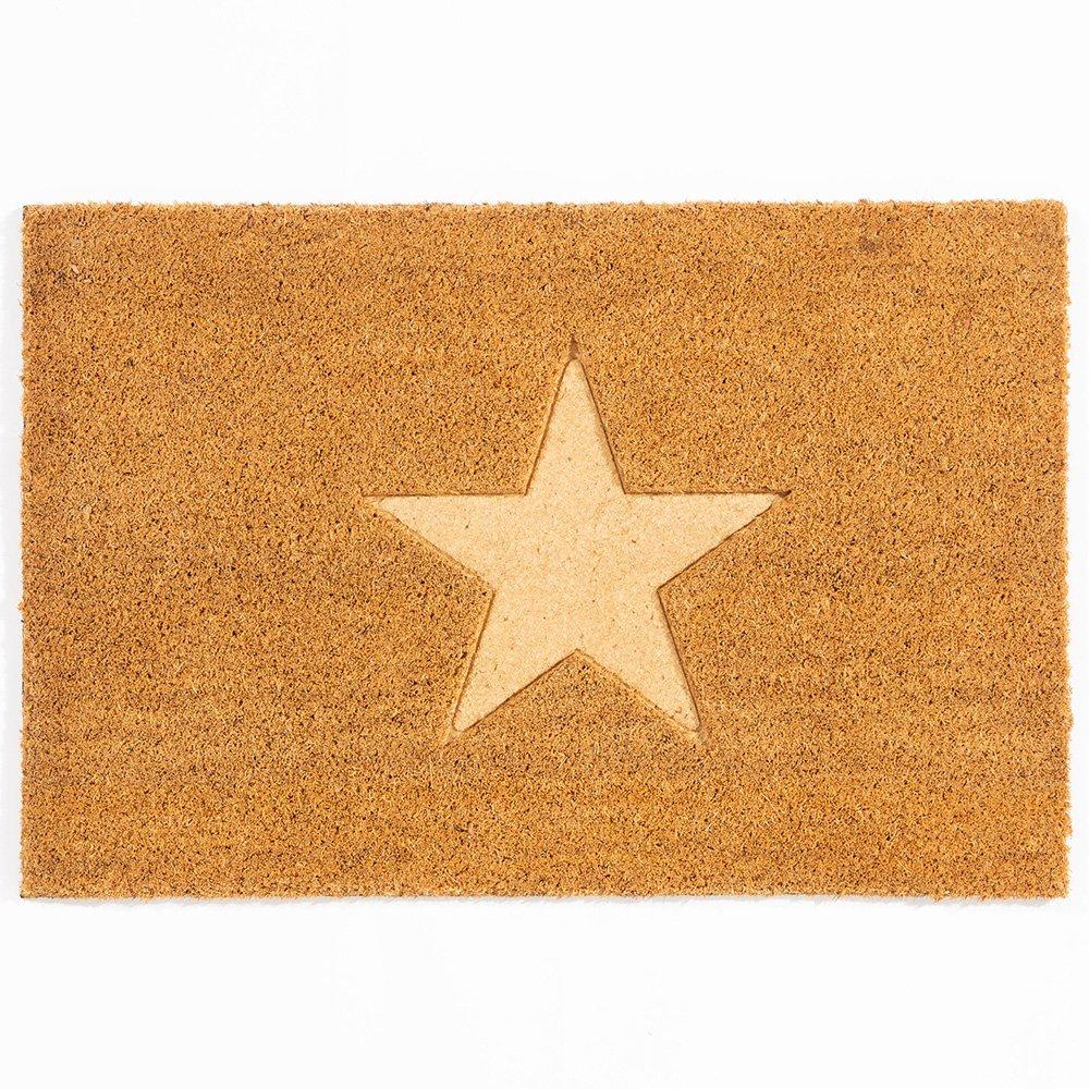 Give a warm welcome to your home with our pressed star doormat from the Pride of Place collection. Made from 100% natural coir; coir bristles are perfect for scraping shoes ensuring the dirt gets captured between the grips of your shoes. Simply shake the mat outside for quick easy cleaning. Durable Coir Material: Made from robust coir fibres, these doormats are designed to withstand heavy foot traffic and trap dirt effectively. PVC Backing: Provides excellent grip and prevents slipping, ensuring the doormat stays securely in place while protecting your floors from moisture and dirt. Practical and Easy to Clean: Coir bristles effectively remove dirt from shoes, with easy maintenance to keep it looking fresh. Starry Welcome: Showcases a pressed star design, offering a stylish and welcoming look at your doorstep. 60 x 40 x 1.5