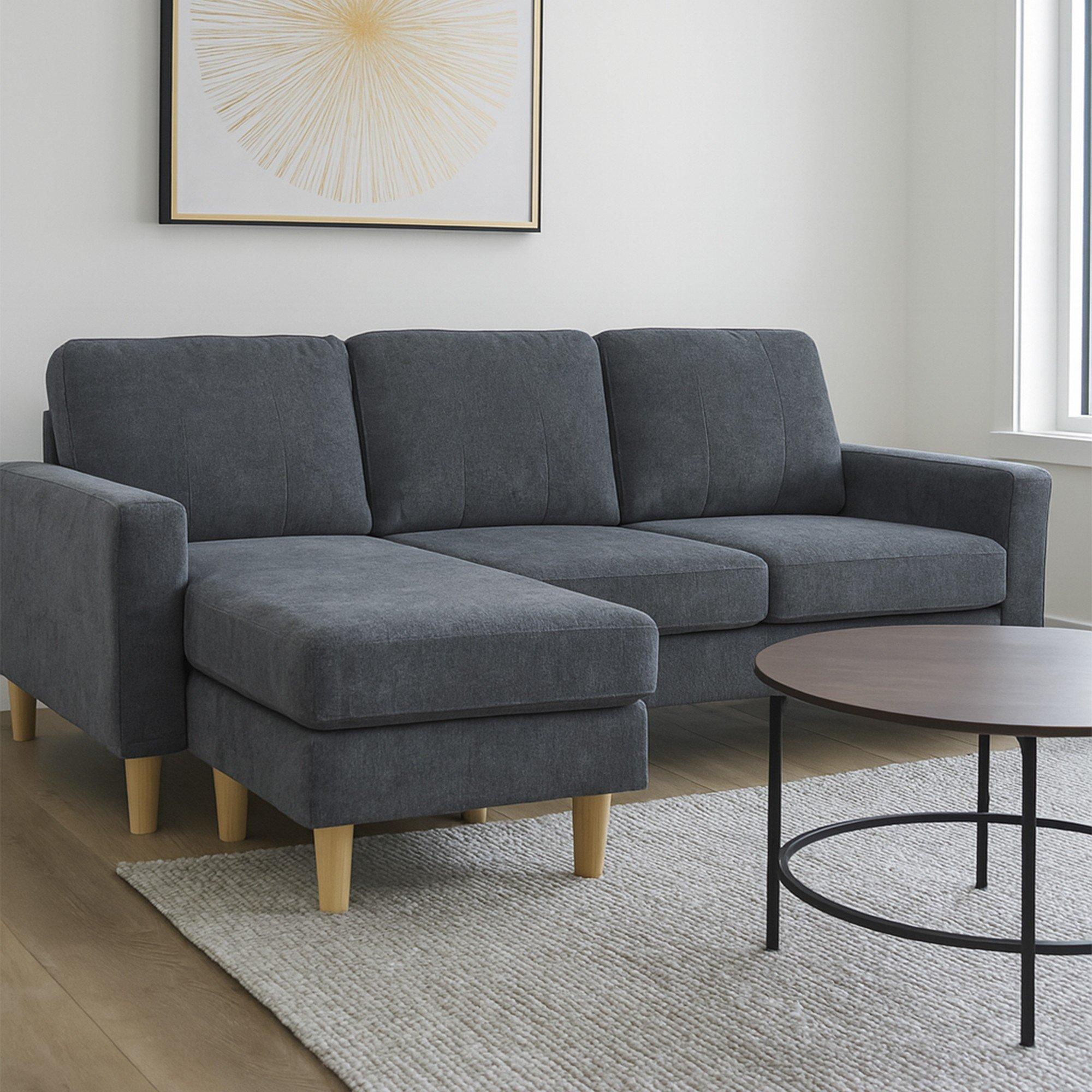 Pad Compact Sofa with Reversible Chaise Small footprint. Big on comfort. Built to last. The Pad Sofa is proof that great things come in small packages. With its clean lines, contemporary styling, and cleverly compact proportions, it’s the ideal choice for apartments, studios, or any space where every inch counts. The chaise is fully reversible, so it can be positioned on the left or right side during assembly – giving you flexibility to suit your space now, and down the line. Despite its smaller footprint, the Pad doesn’t compromise on comfort or quality. It’s built on a hardwood frame with reinforced arm bracing, features pocket sprung seats with high-density foam, and includes durable hardware throughout. Upholstered in a soft wool-effect fabric available in Natural, Light Grey, or Charcoal, the Pad delivers a modern, minimalist look with everyday comfort built in.