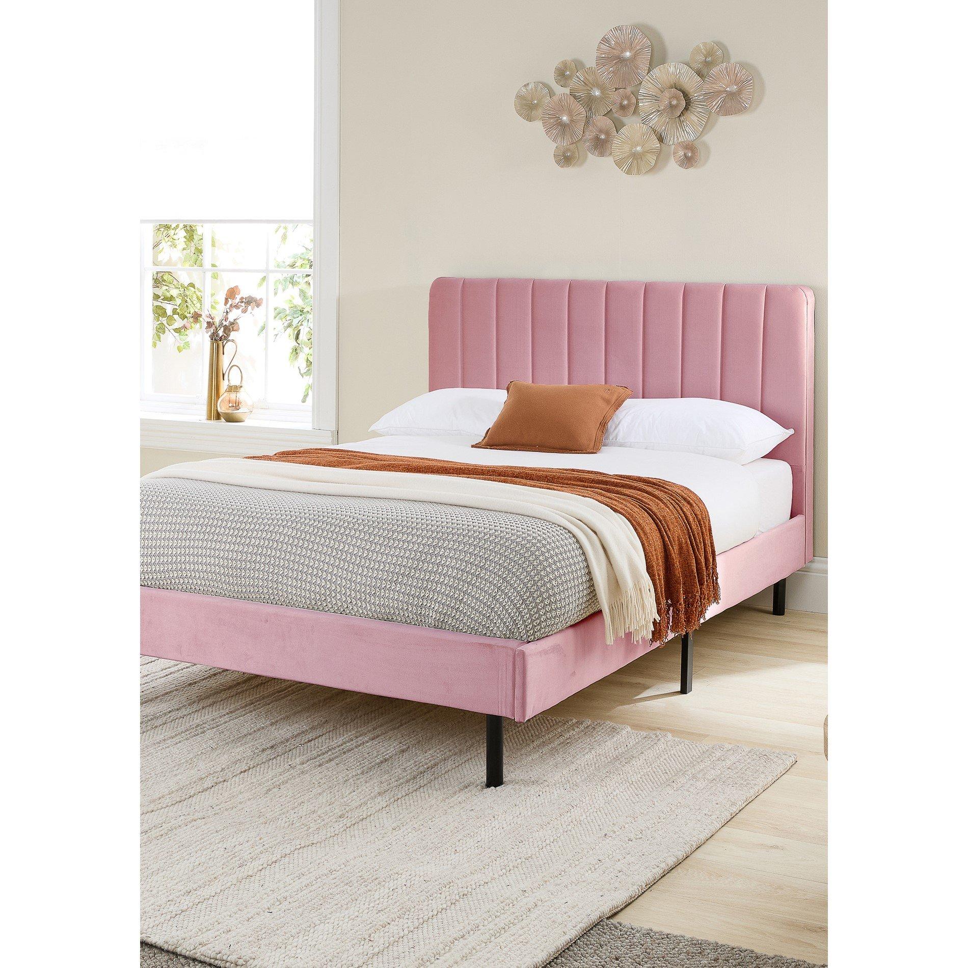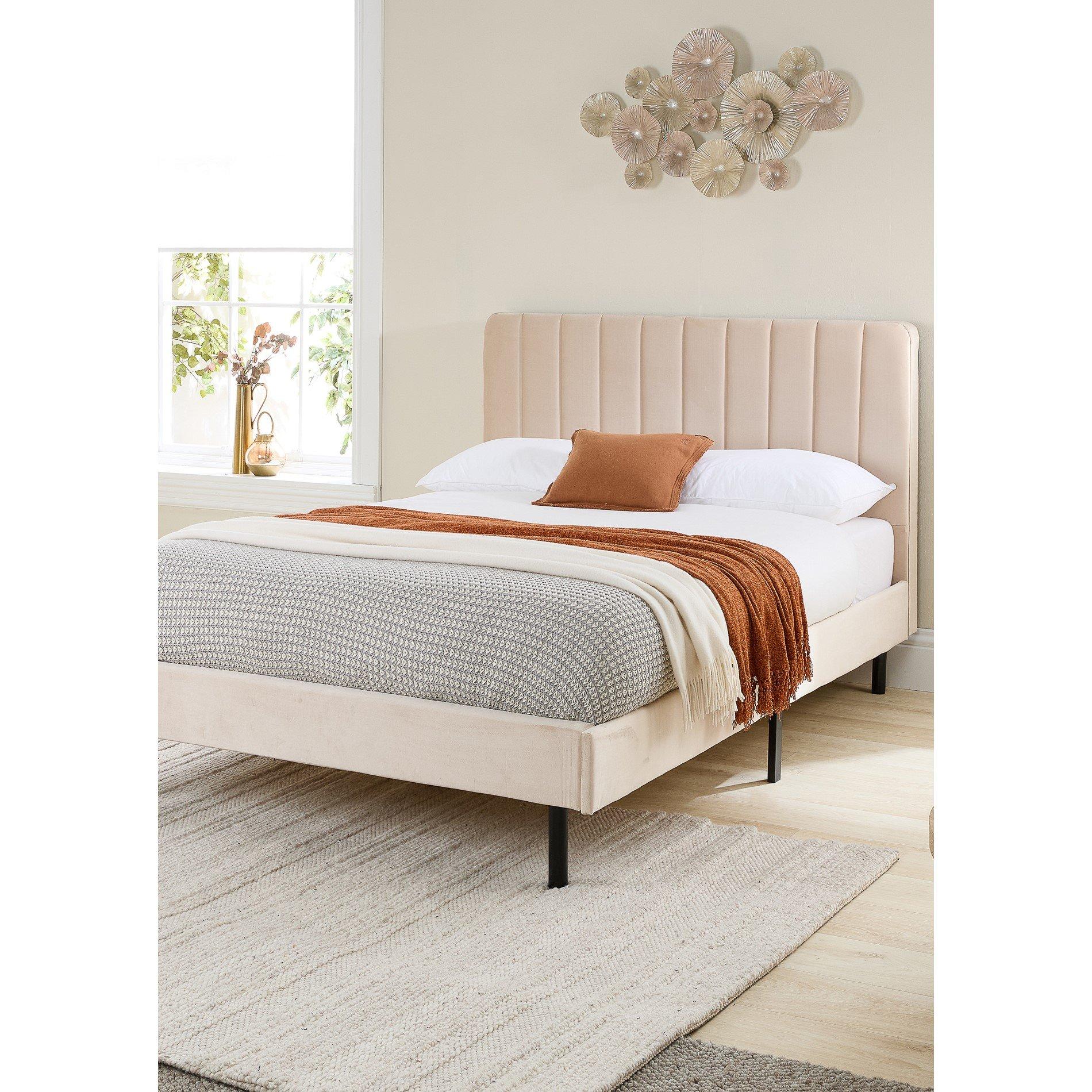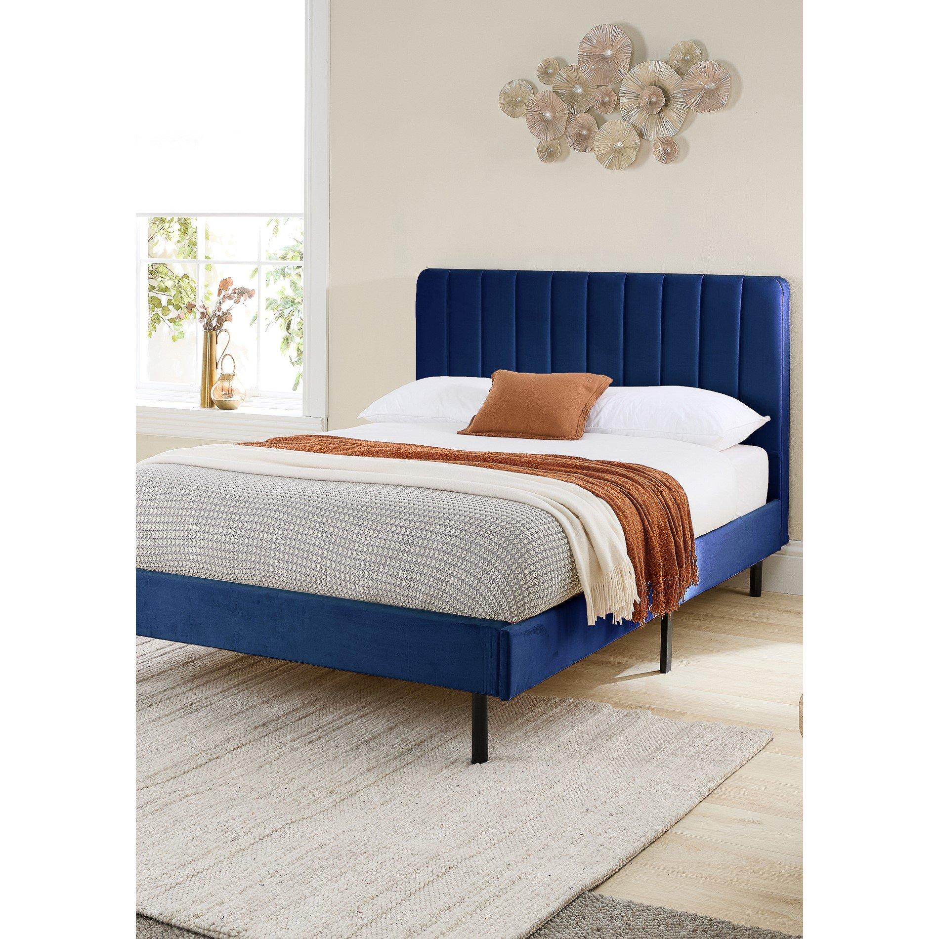 Introducing our upholstered bed frame, featuring a chic padded headboard and crafted from a robust blend of wood and steel. Wrapped in plush velvet upholstery, available in a variety of colours, it effortlessly adds a modern touch to any bedroom décor. The foam-padded headboard offers exceptional comfort for both your head and body.