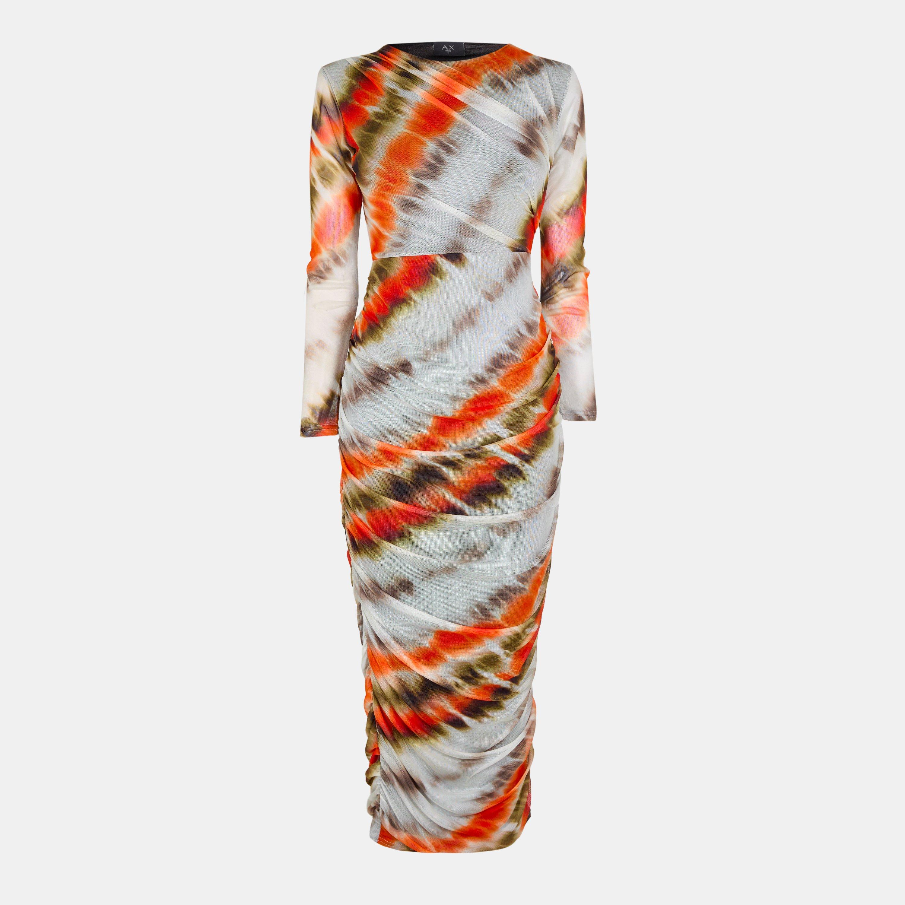 AX Paris Cream And Orange Abstract Print Mesh Long Sleeve Bodycon Midi Dress