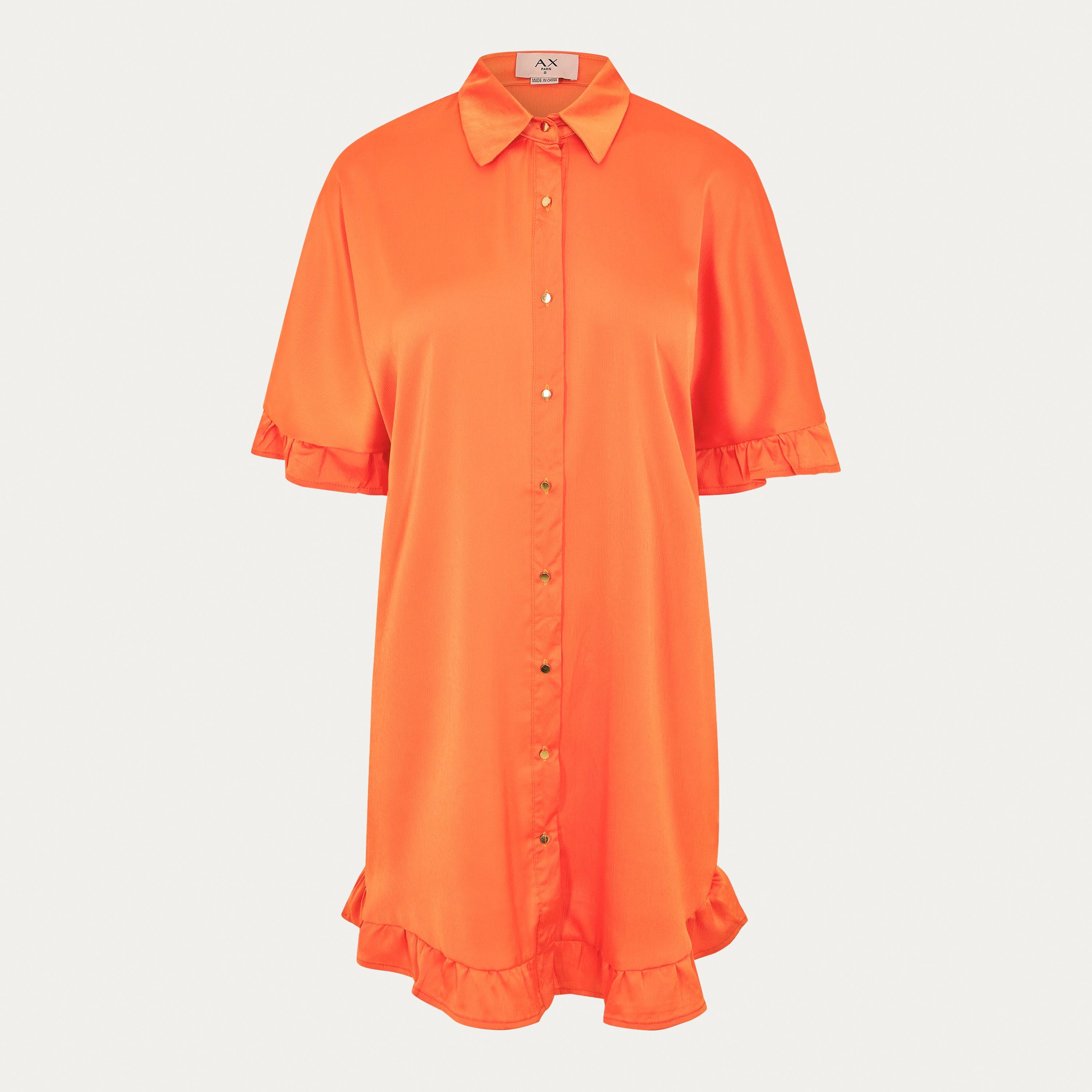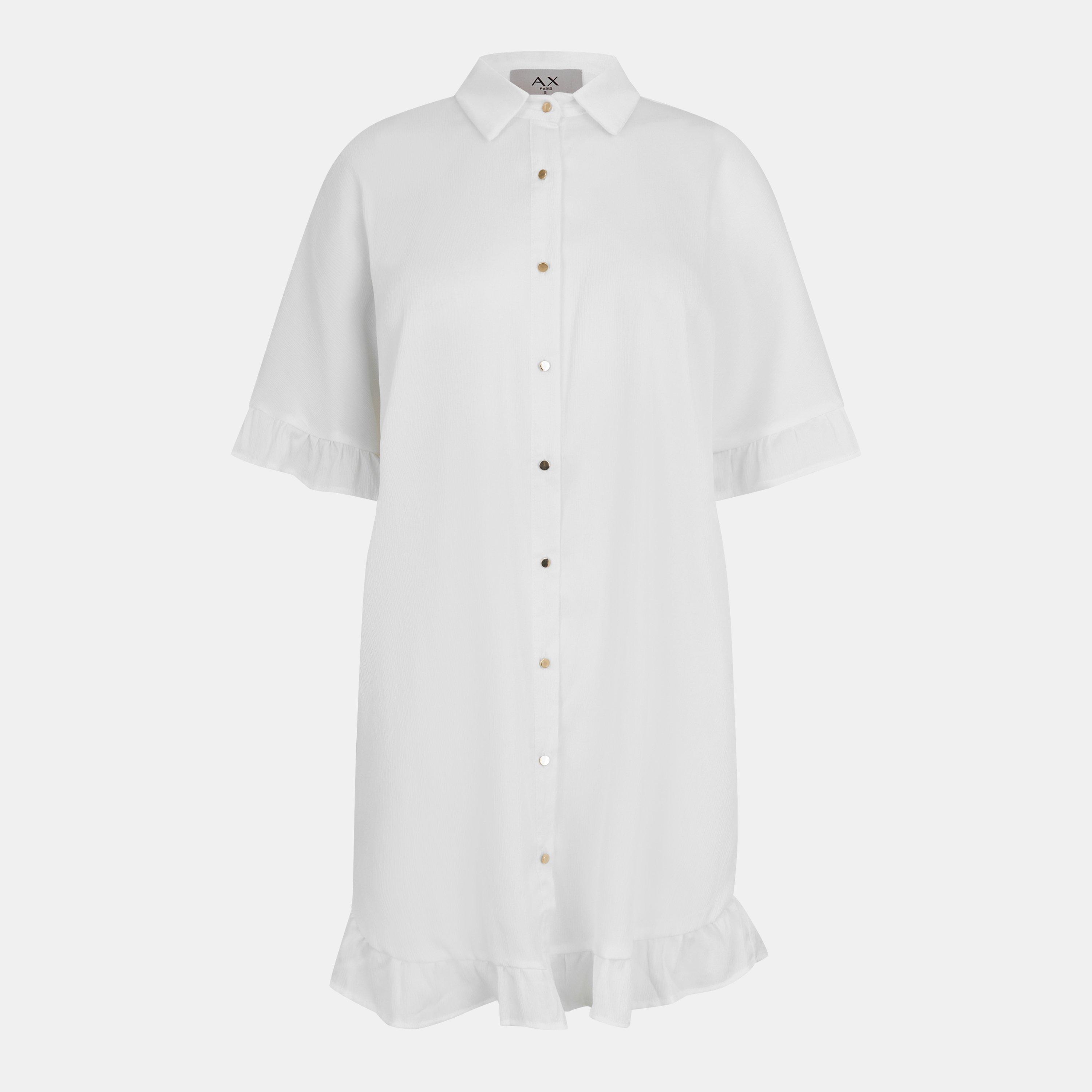This Frill Detail Gold Button Front Shirt Dress is a perfect staple to your wardrobe, with frill detail on the sleeve and hem, a gold button front and classic collar. Pair with sandals, an over-sized shoulder bag and sunglasses for a cute and casual summer look or dress up with heeled sandals and a mini bag.