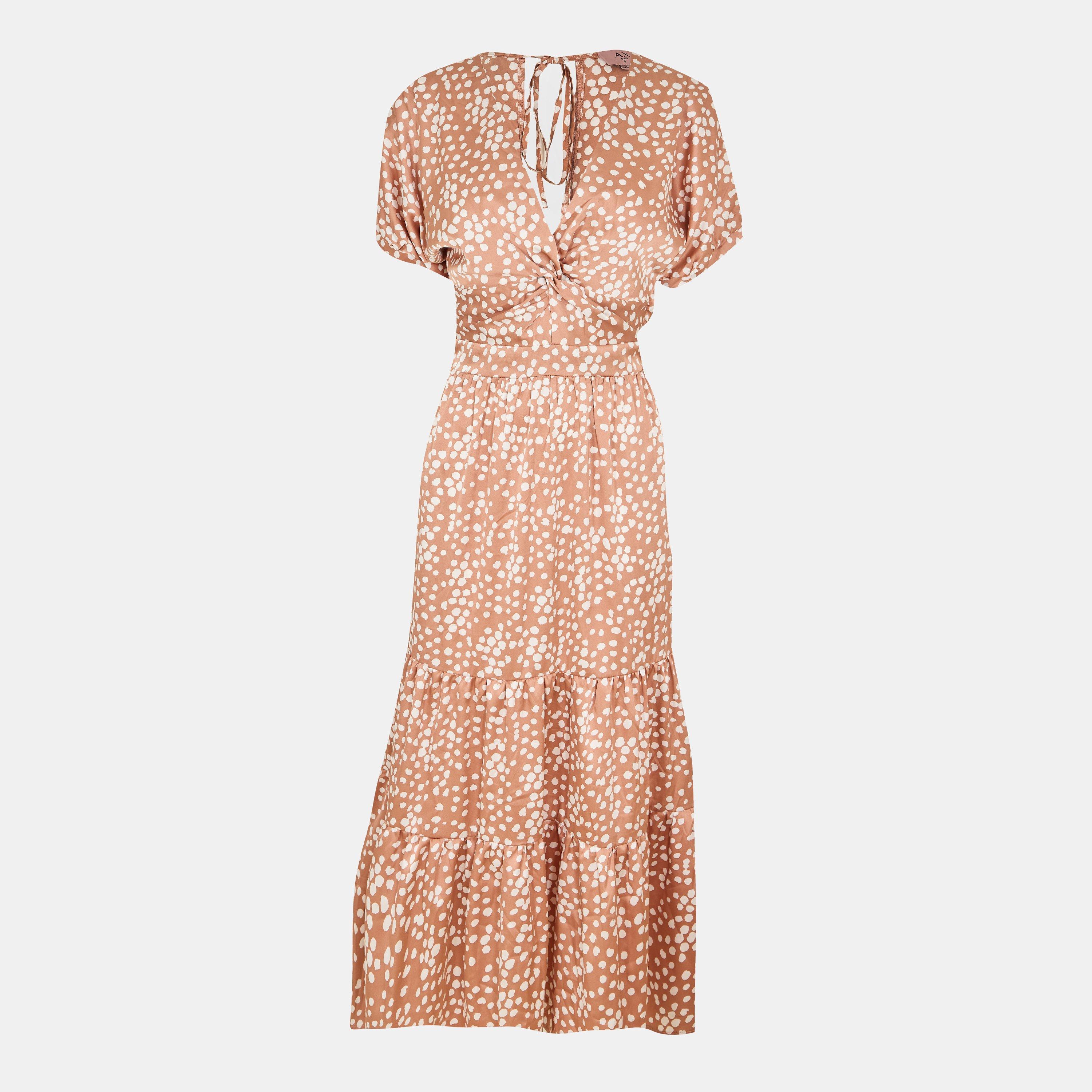 Our Mocha Print Twist Front Midi Dress is perfect for spring events, holidays and garden parties. Designed in a feminine and floaty silhouette featuring a twist front, tie back, elasticated waist and full length midi skirt. Wear with cream heeled sandals and a small cream bag to complete the look.