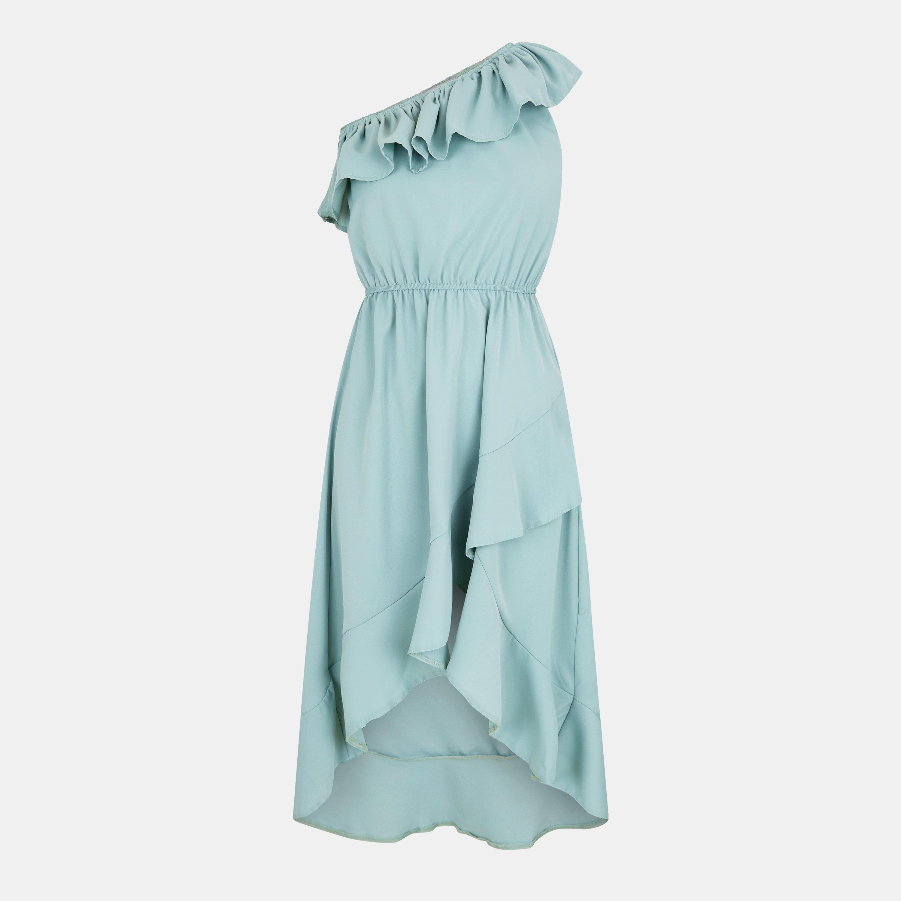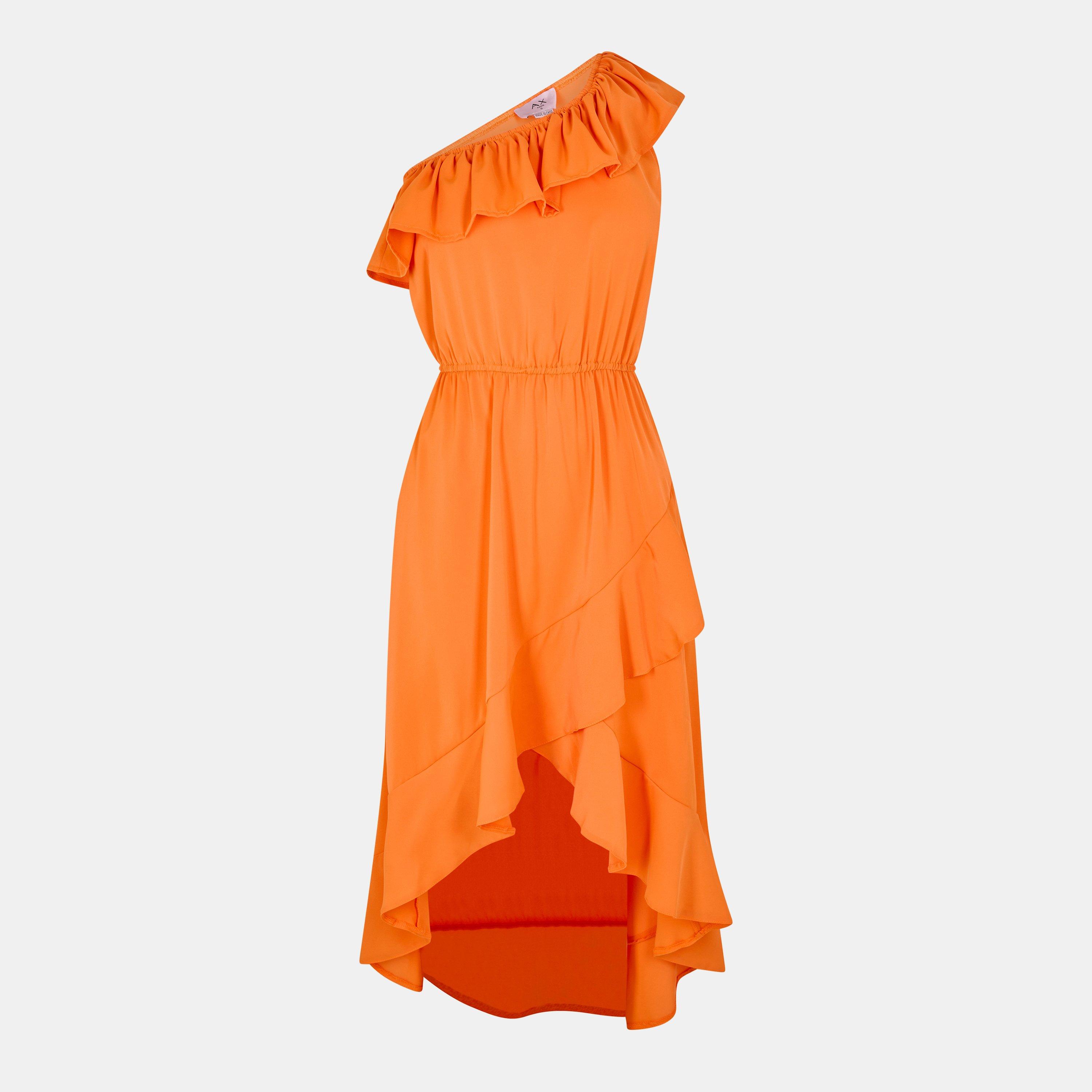 Our One Shoulder Frill Detail Dipped Hem Dress is the perfect evening dress for this season! Its one shoulder frill top, elasticated waist, and high low skirt makes this dress super flattering. Team it with some heels and a clutch the complete the look!