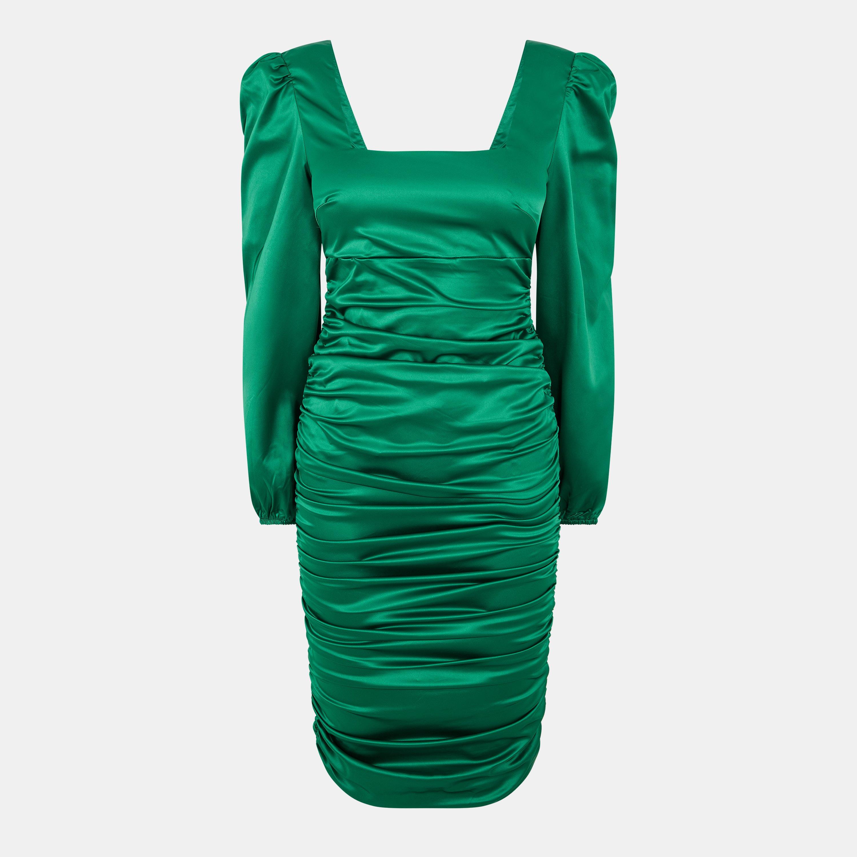 Turn heads in our Satin Square Neck Ruched Dress. Featuring a flattering neckline and ruched skirt, it's perfect to show off your figure!
