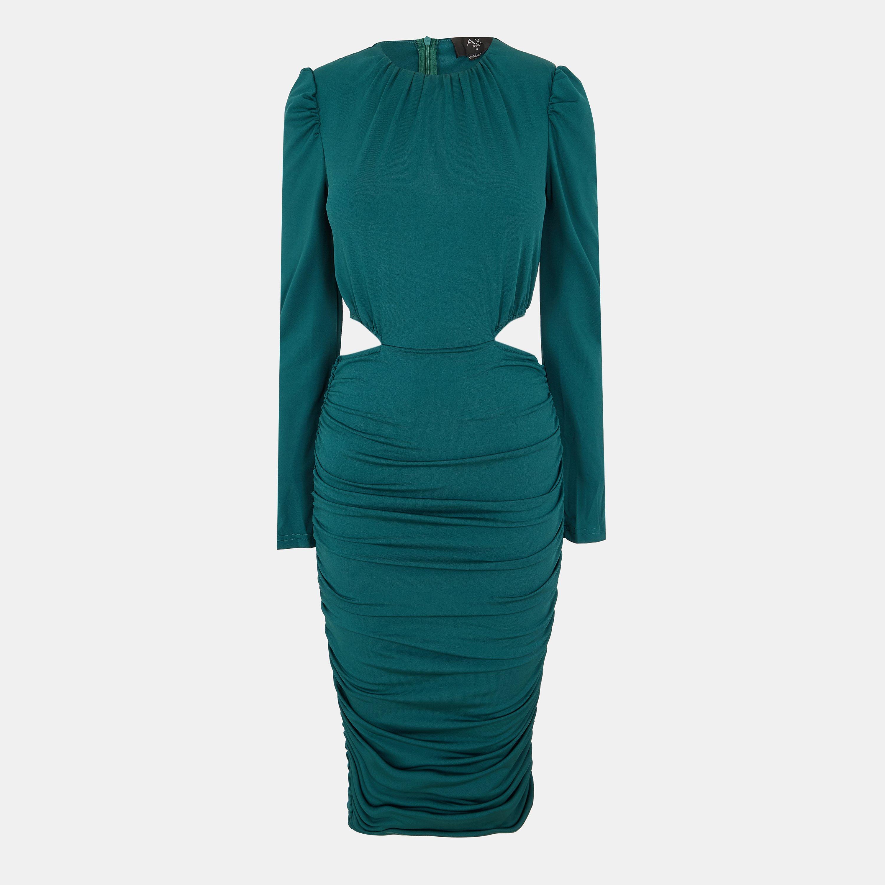 Our chic Teal Cut Out Waist Midi Dress combines a classic bodycon silhouette with modern details perfect for parties and night's out with the girls. Featuring a cut out waist, shoulder pads, long sleeves, a zip up back and a ruched midi length skirt. Pair with killer heels and statement earrings to complete the look.