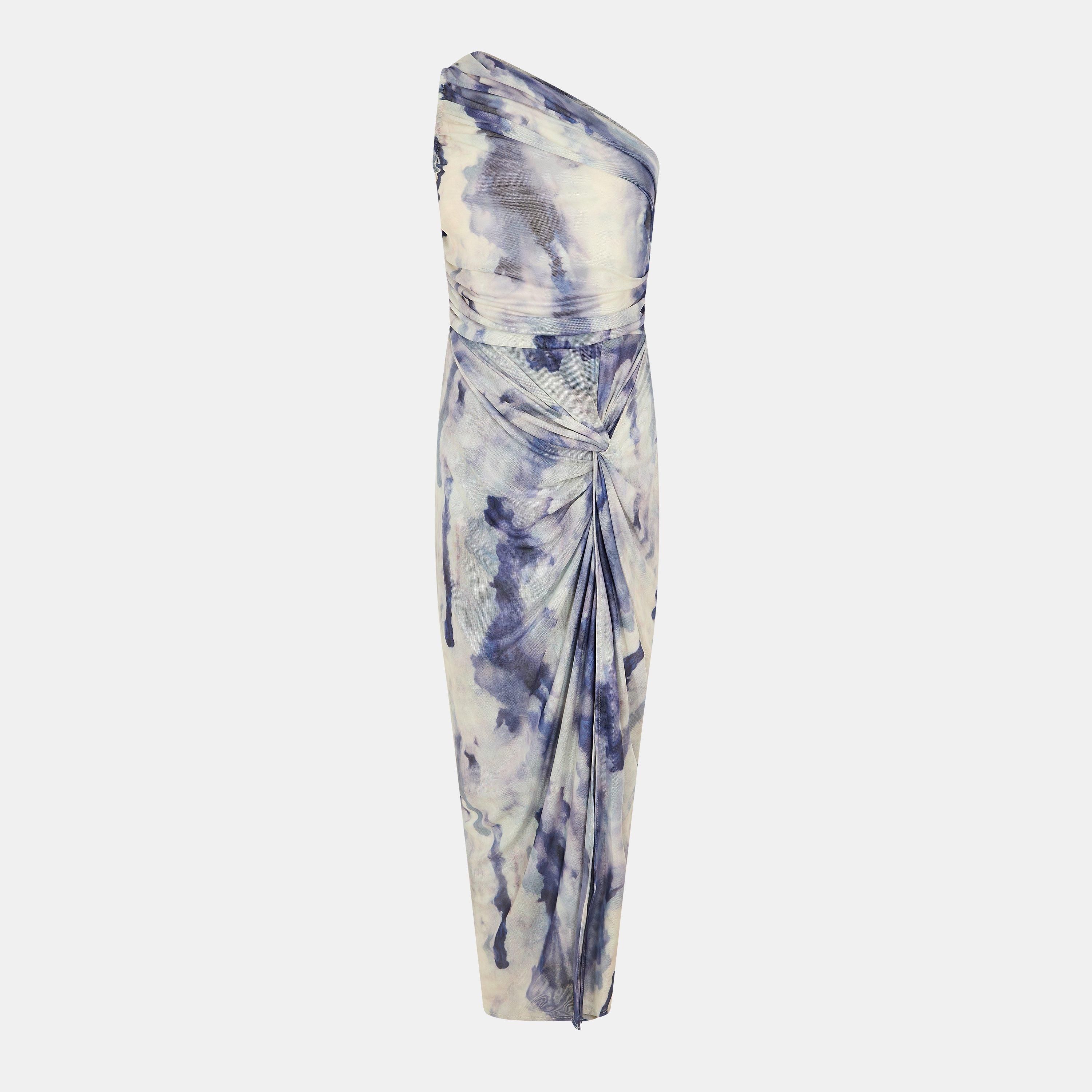 AX Paris Watercolour Print One Shoulder Knot Skirt Mesh Midi Dress