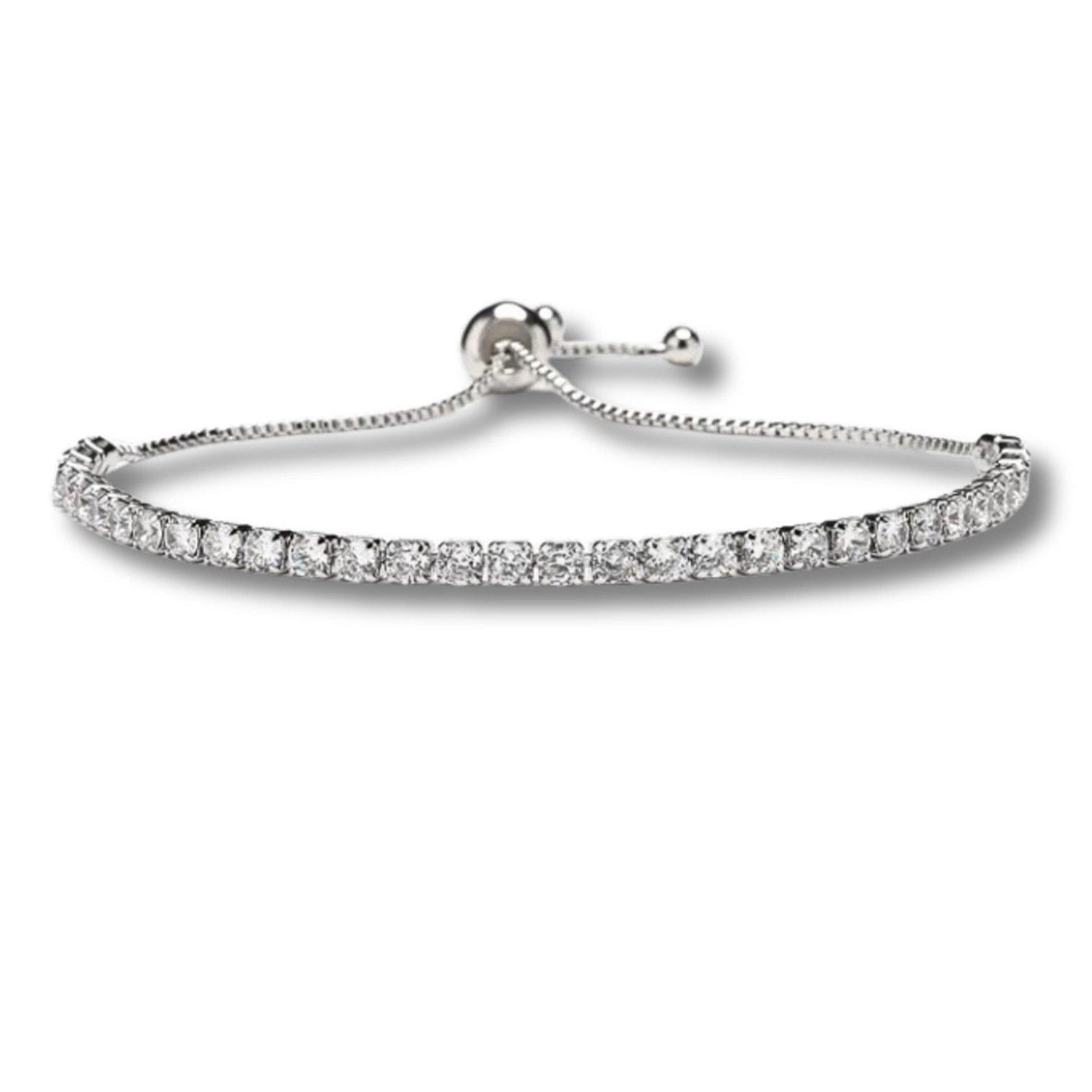 Get ready to turn heads with this radiant diamante slider bracelet, where gleaming stones nestled in silver-plated settings create pure wrist magic. Whether you're marking a milestone, walking down the aisle as a bridesmaid, or simply wanting to add some sparkle to your everyday look, this versatile beauty delivers instant elegance. From Mother's Day surprises to anniversary celebrations, christenings, or birthday tributes, it's the gift that says you're fabulous—and means it. Timeless, dazzling, and endlessly charming.