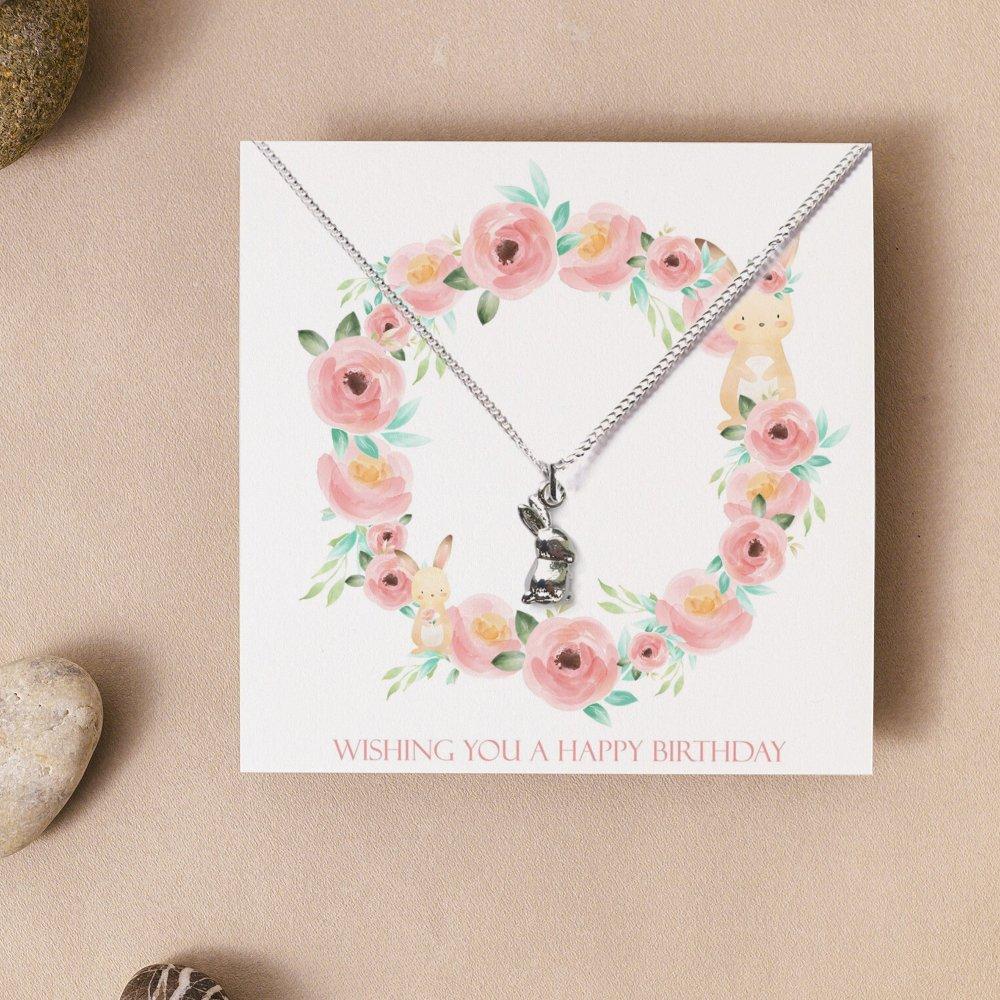 This cute little bunny charm is added to a chain of your choice and is presented on a little message card with the words WISHING YOU A HAPPY BIRTHDAY. There's a small space for you write a note or it can also be left blank the choice is yours. They make a lovely gift for a mum, sister, daughter, aunty, gran or friend that love rabbits.